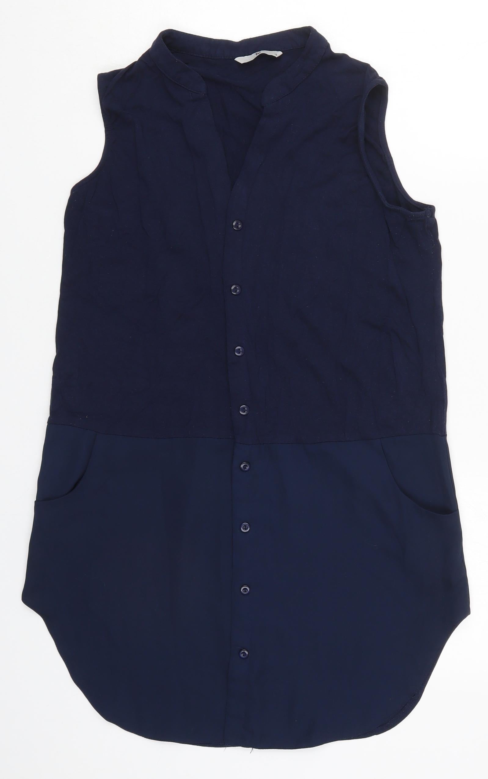 TU Womens Blue Viscose Basic Button-Up Size 10 V-Neck