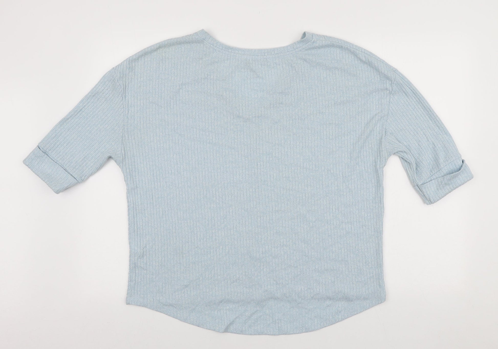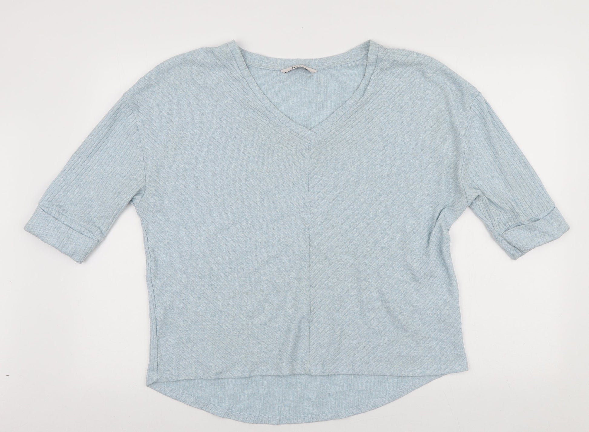 TU Womens Blue Viscose Basic T-Shirt Size 14 V-Neck