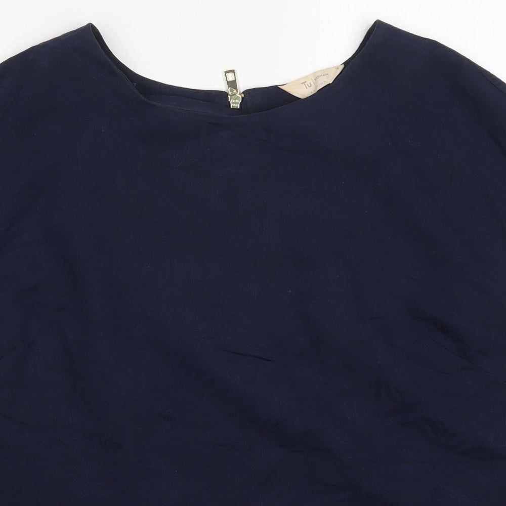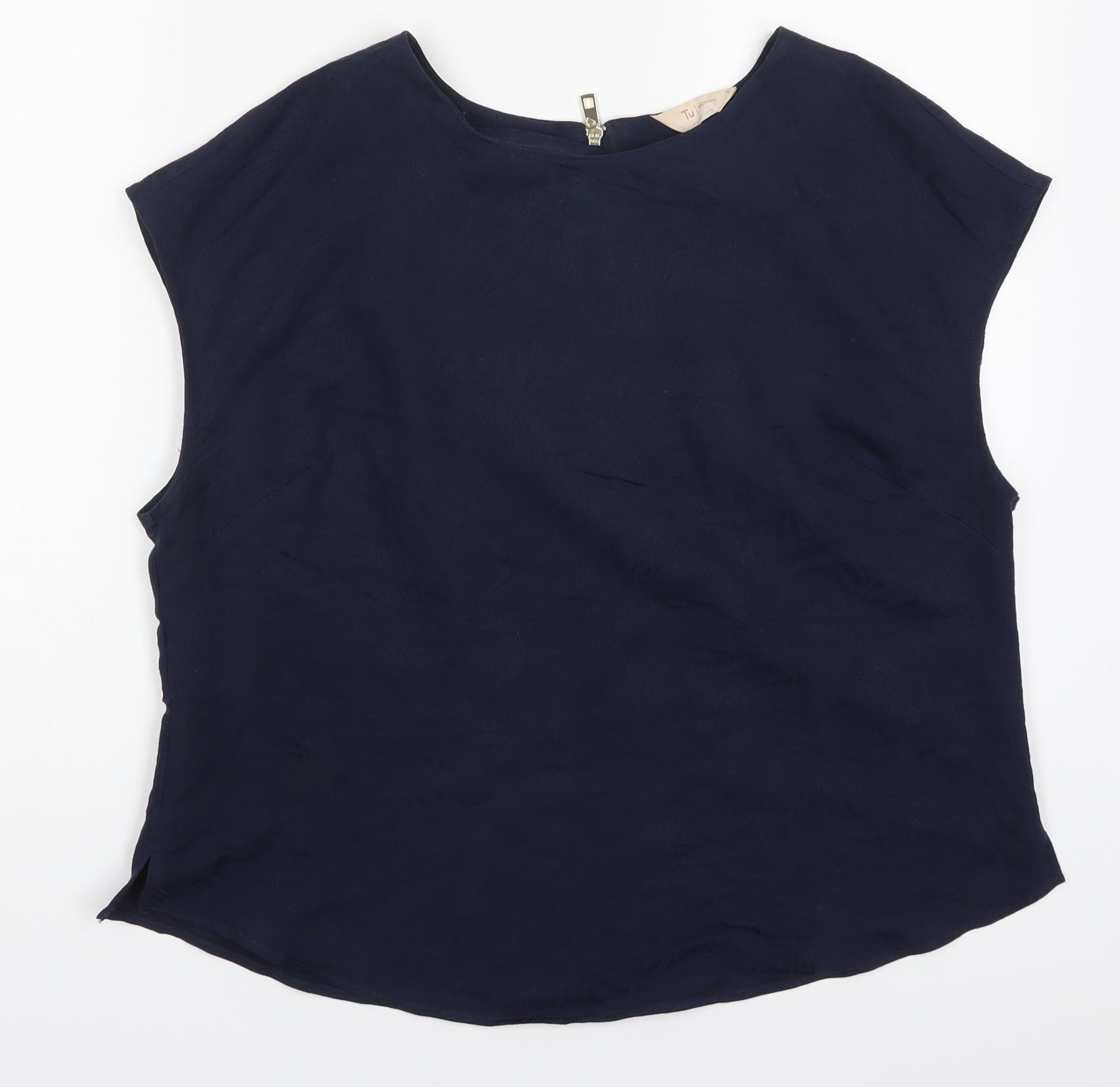 TU Womens Blue Viscose Basic T-Shirt Size 16 Round Neck - Leaf Prints