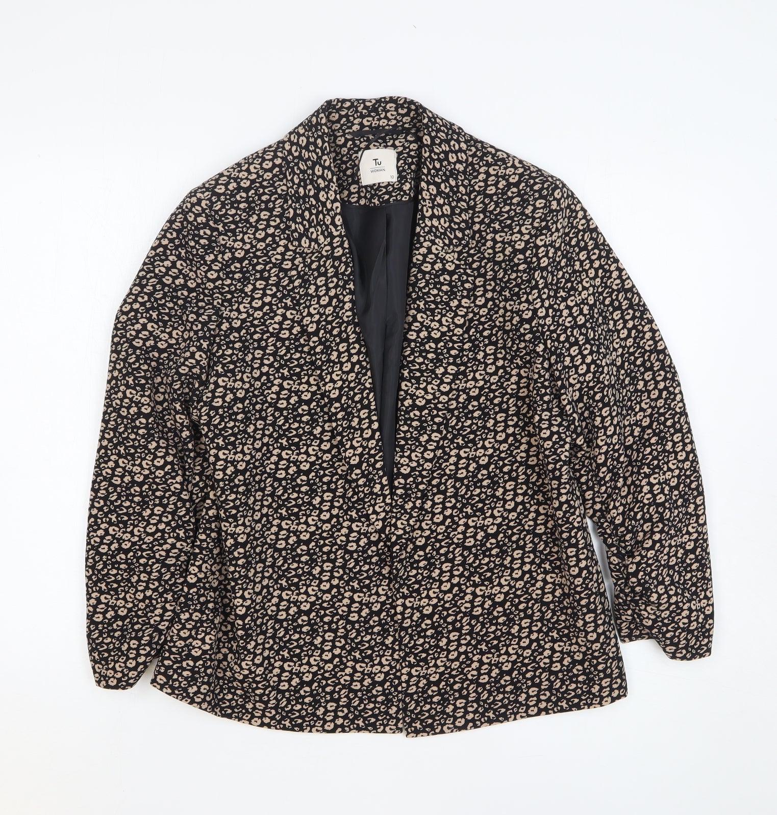TU Womens Brown Animal Print Jacket Blazer Size 10