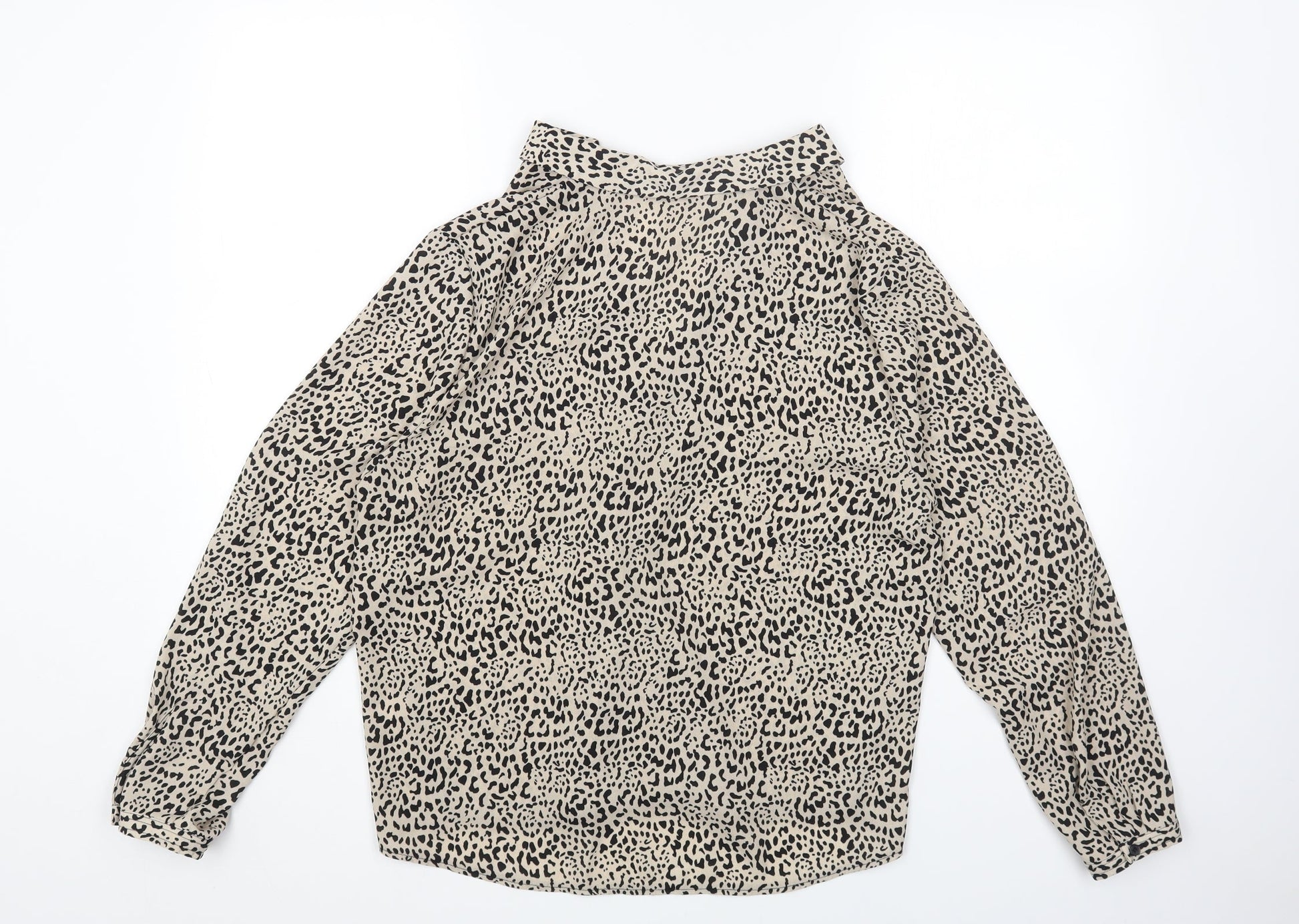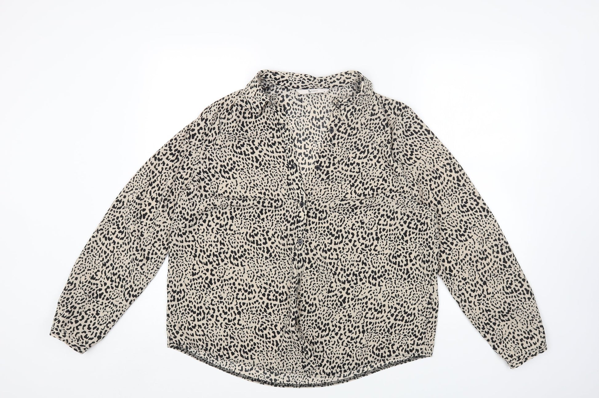 TU Womens Brown Animal Print Polyester Basic Button-Up Size 14 Collared