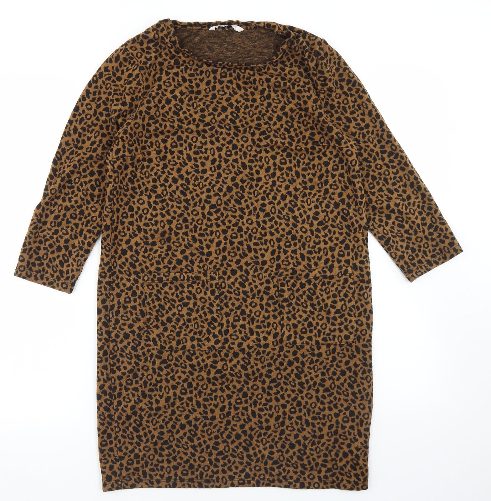 TU Womens Brown Animal Print Viscose Pencil Dress Size 10 Round Neck