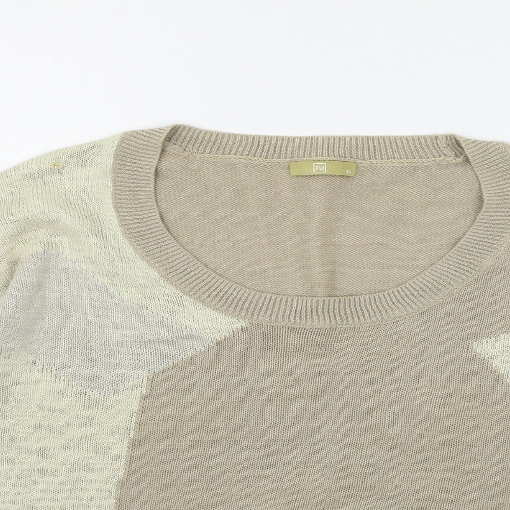 TU Womens Brown Geometric Knit Pullover Jumper Size 10