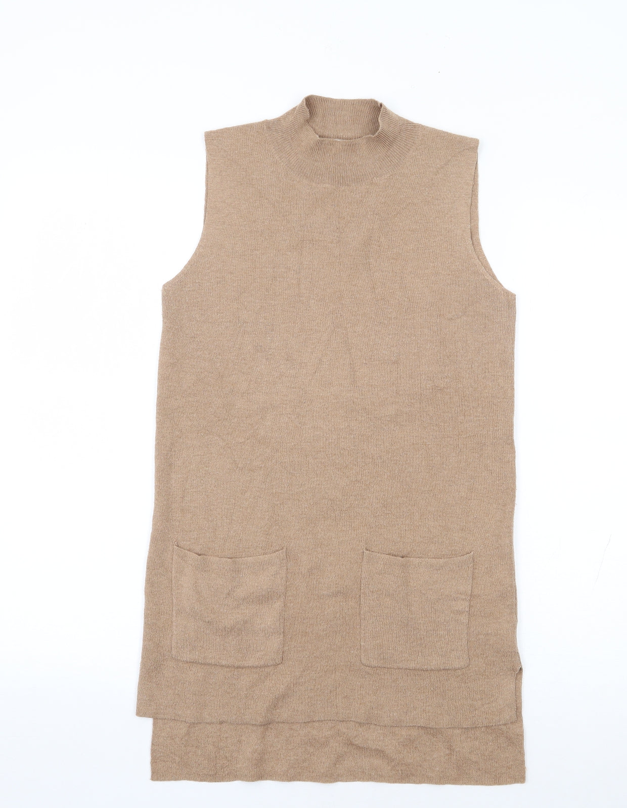 TU Womens Brown Mock Neck Polyester Tunic Jumper Size 8