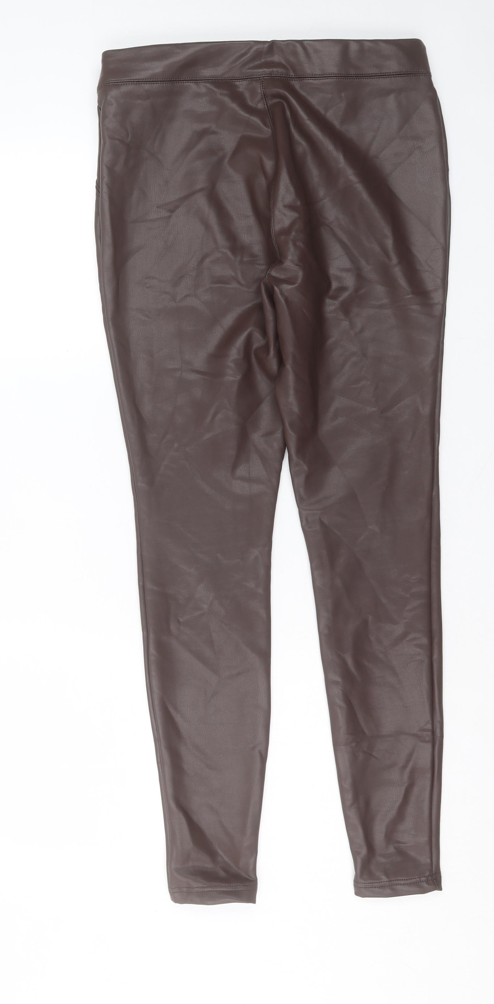 TU Womens Brown Polyurethane Trousers Size 12 L29 in Regular