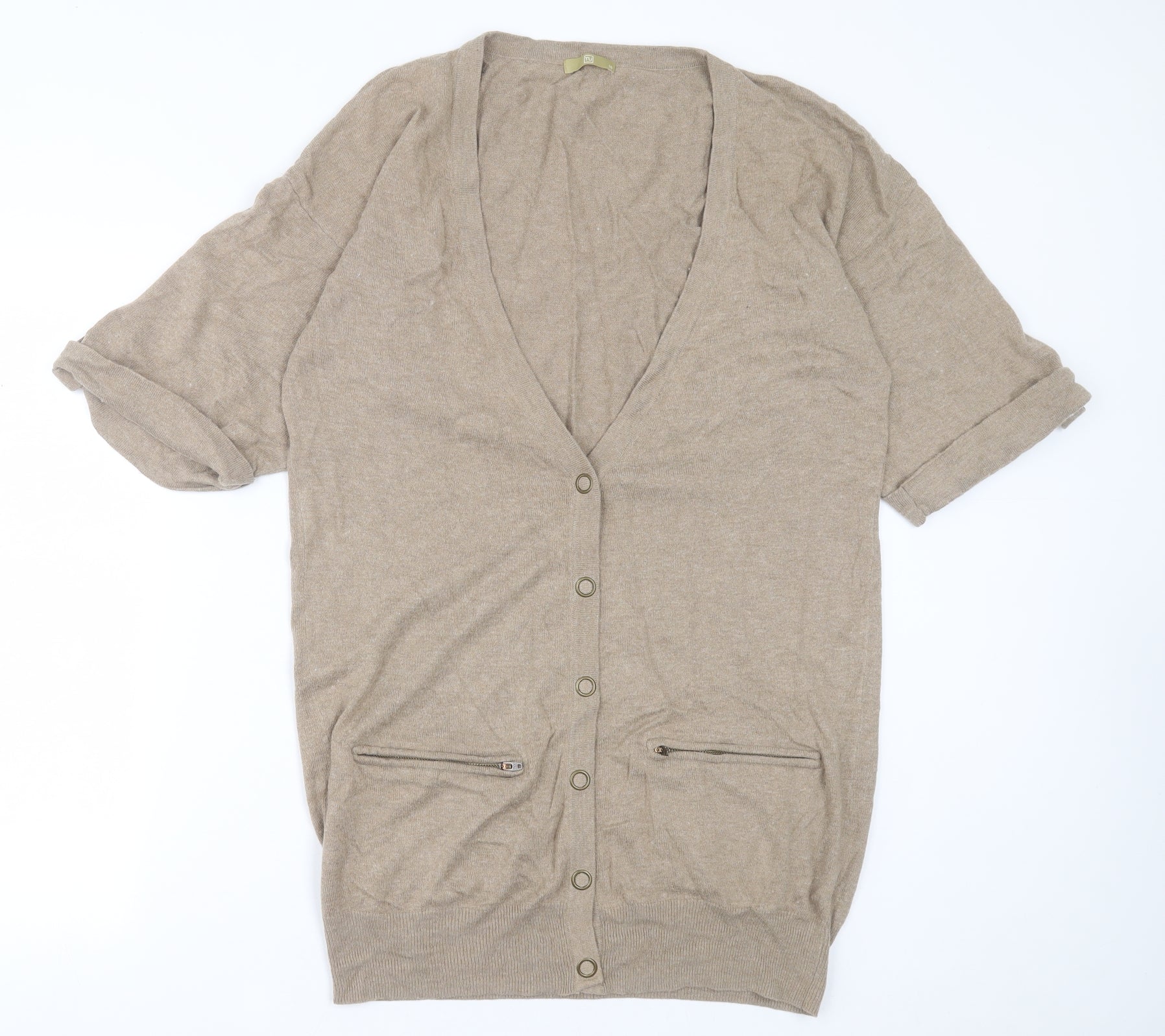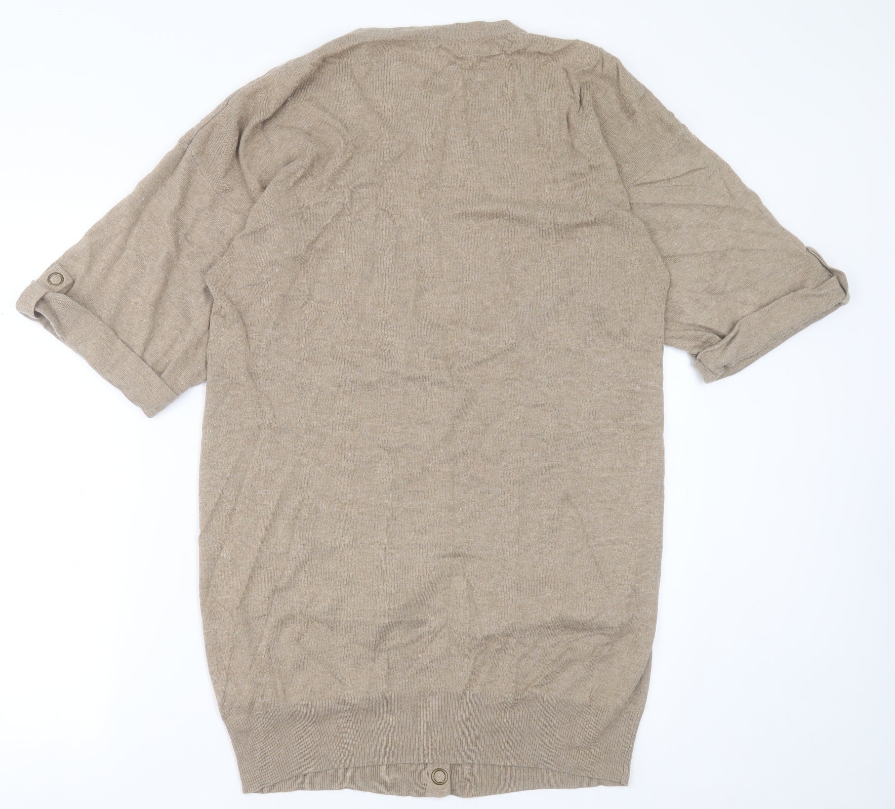 TU Womens Brown V-Neck Acrylic Cardigan Jumper Size 16