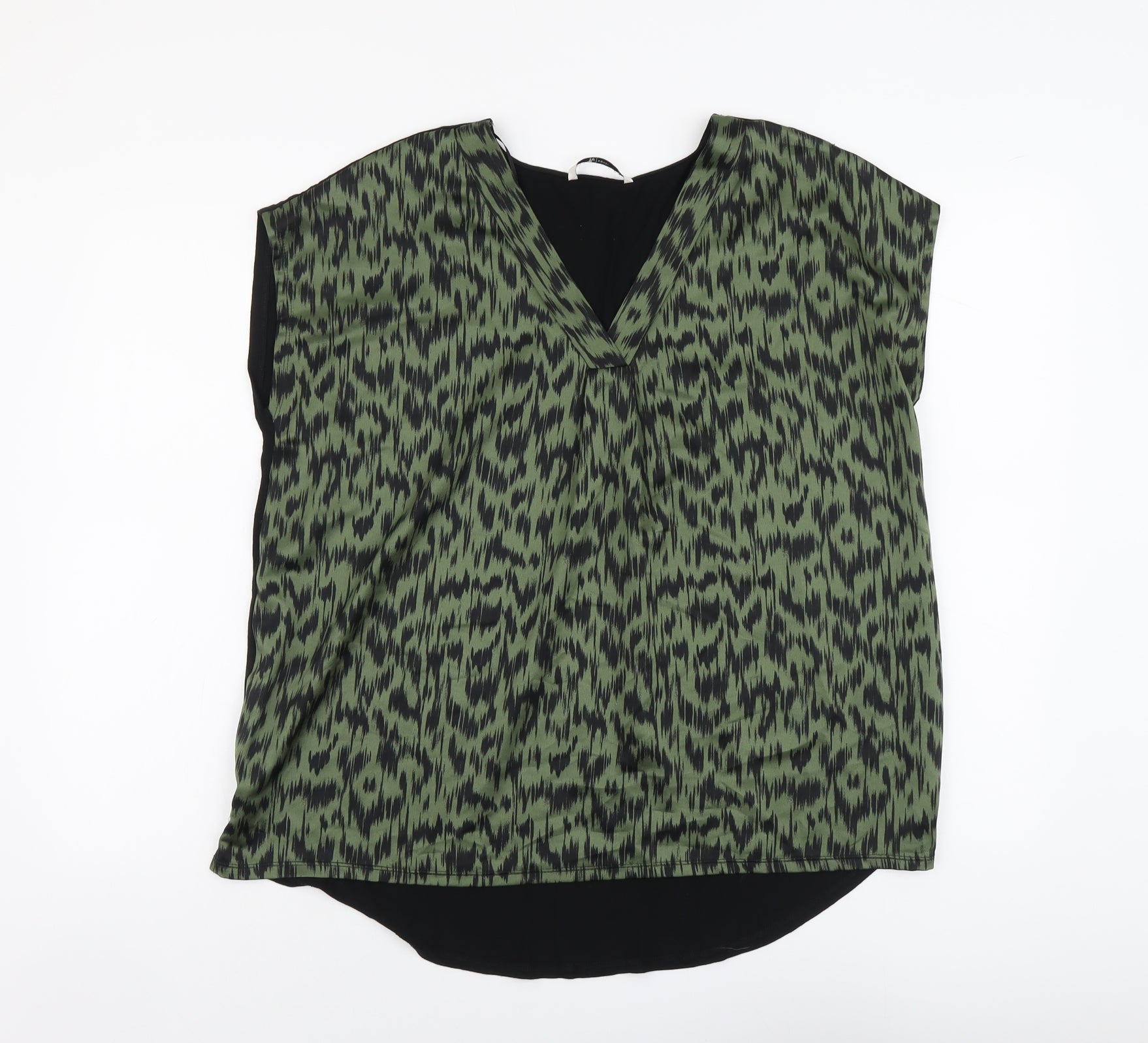 TU Womens Green Geometric Polyester Basic Blouse Size 10 V-Neck