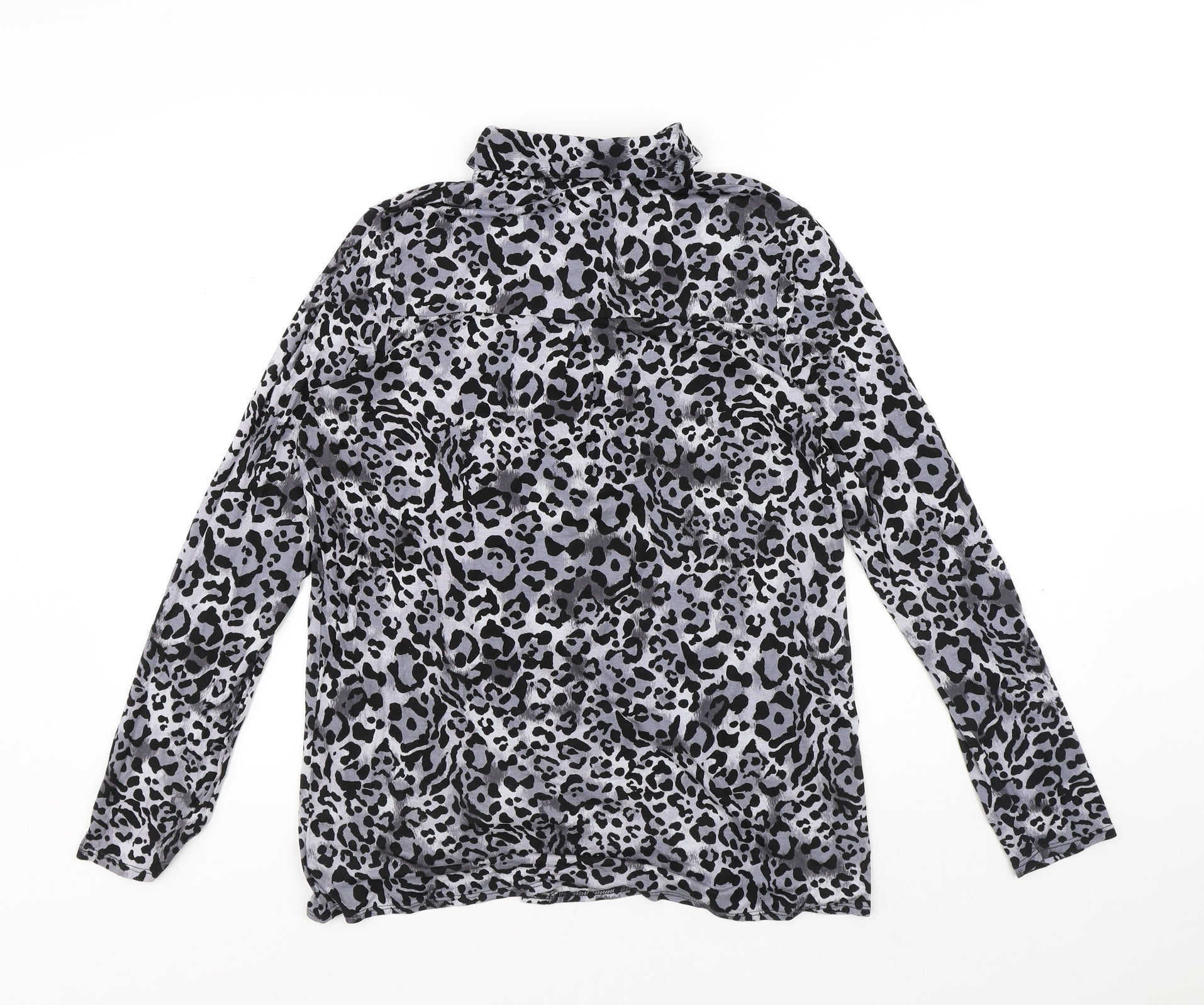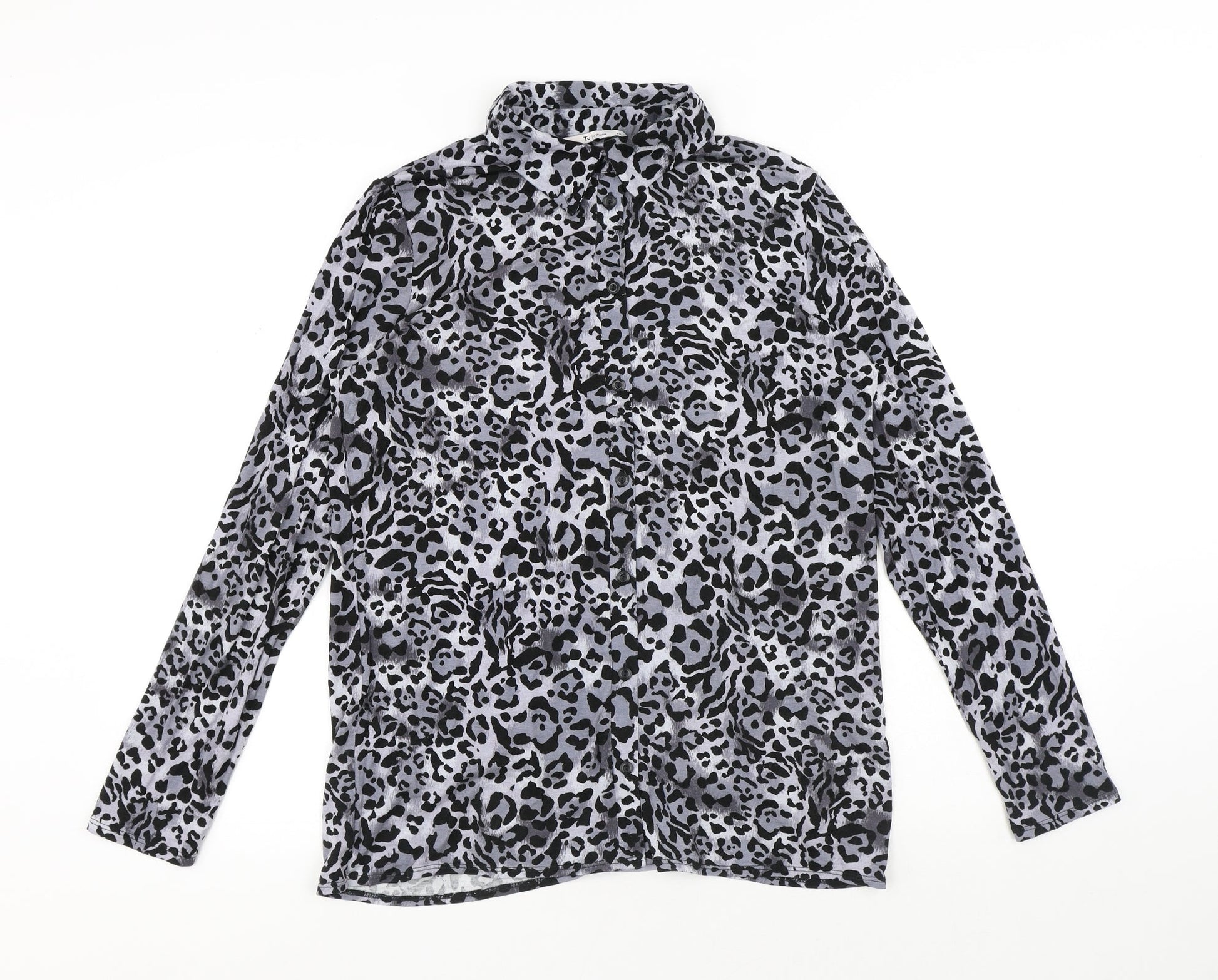 TU Womens Grey Animal Print Viscose Basic Button-Up Size 12 Collared - Leopard Print