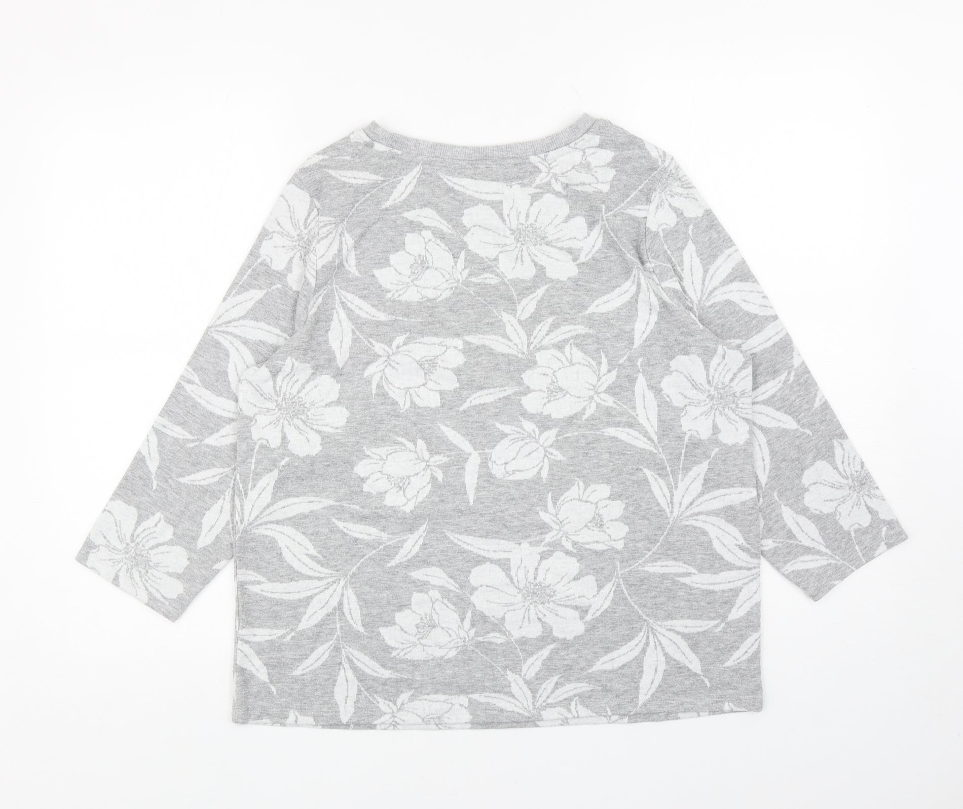TU Womens Grey Boat Neck Floral Polyester Pullover Jumper Size 14