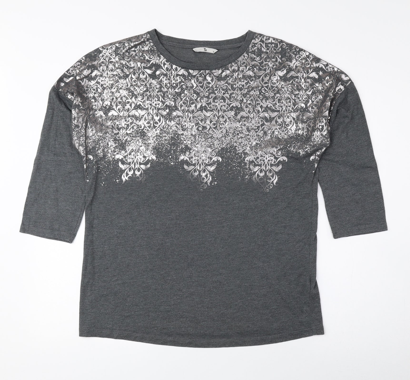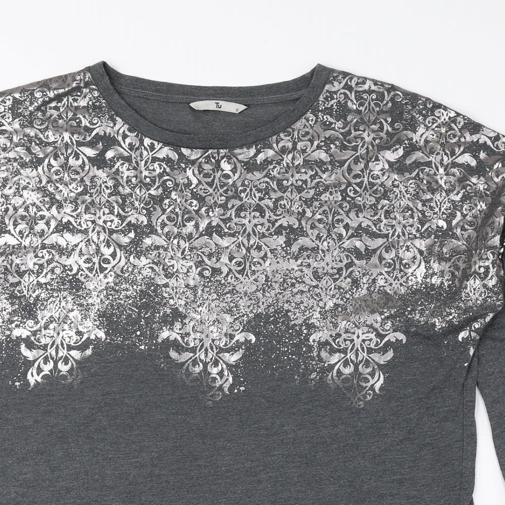 TU Womens Grey Cotton Basic Blouse Size 12 Round Neck