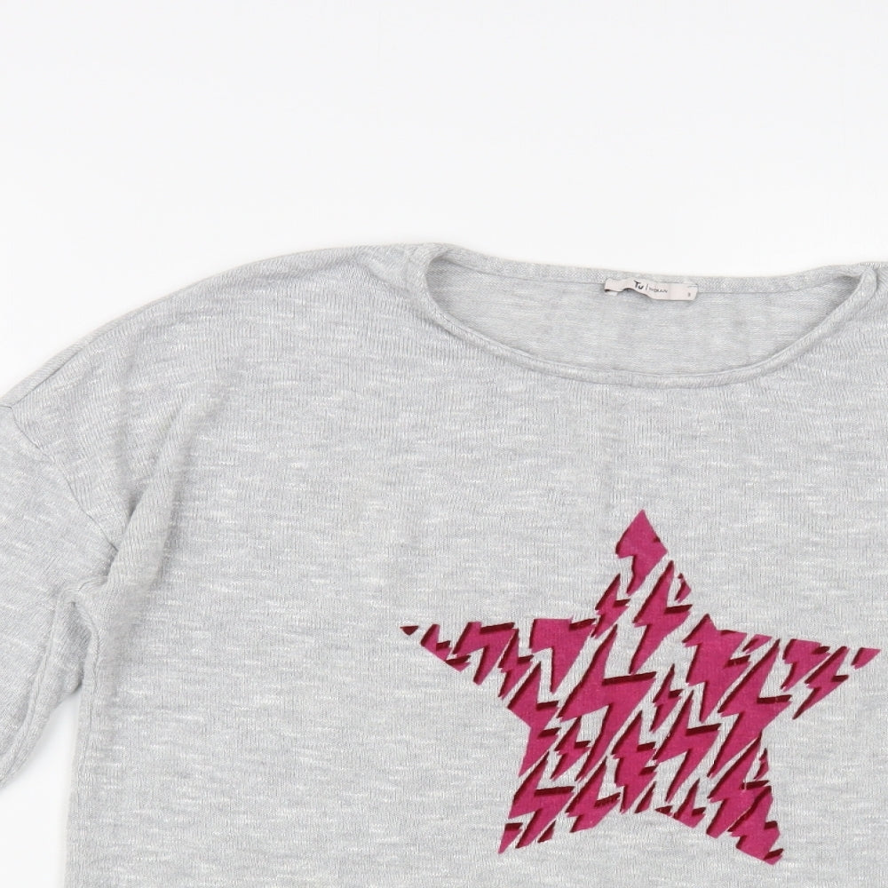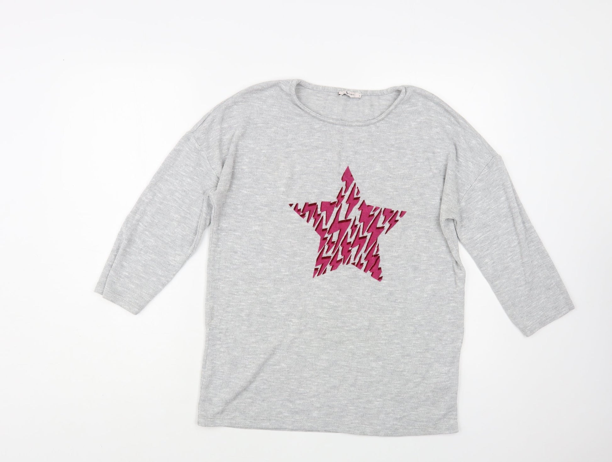 TU Womens Grey Crew Neck Polyester Pullover Jumper Size 8 - Star