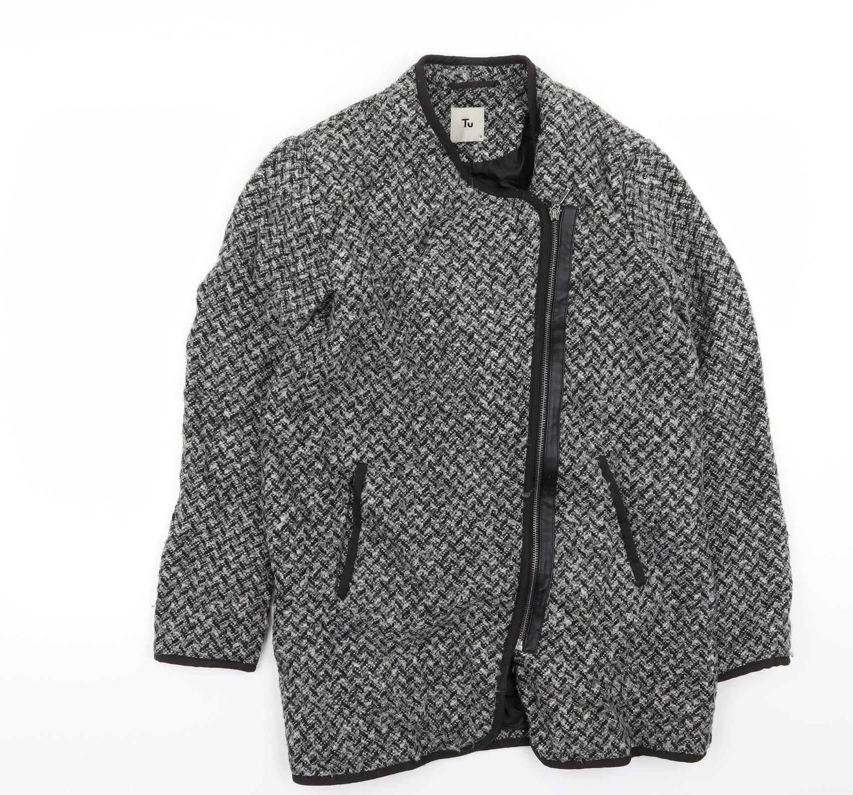 TU Womens Grey Houndstooth Jacket Coat Size 8