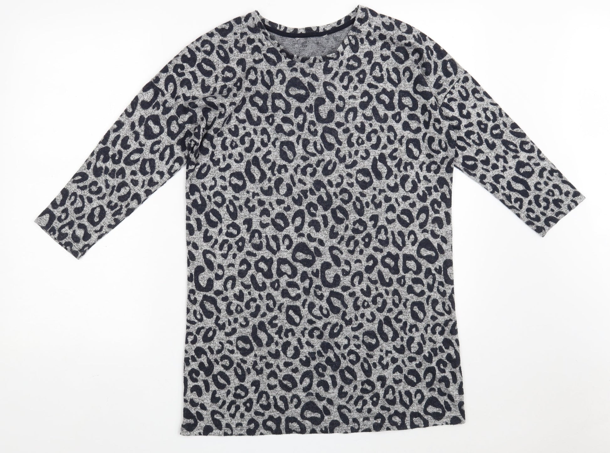 TU Womens Grey Round Neck Animal Print Viscose Pullover Jumper Size 8