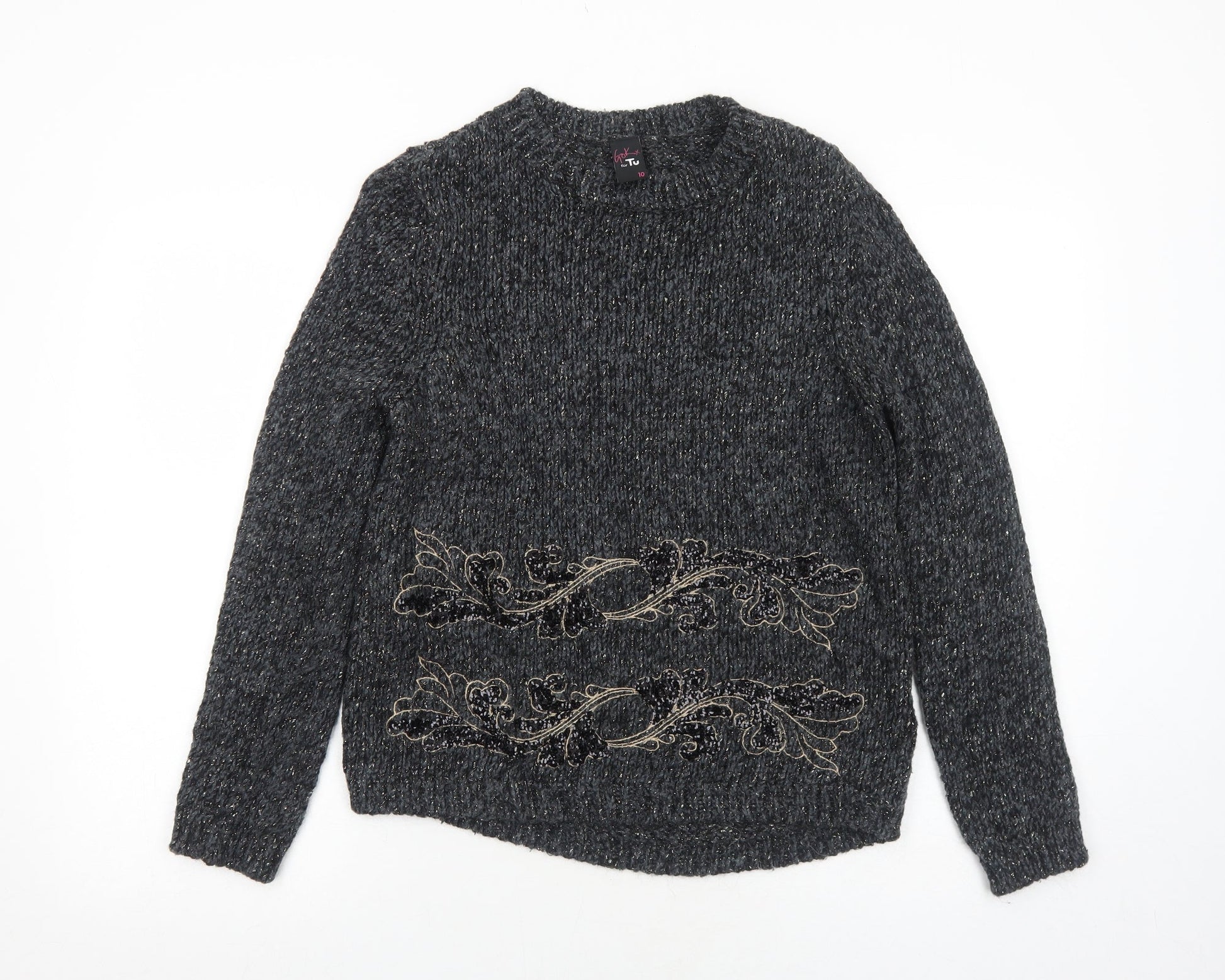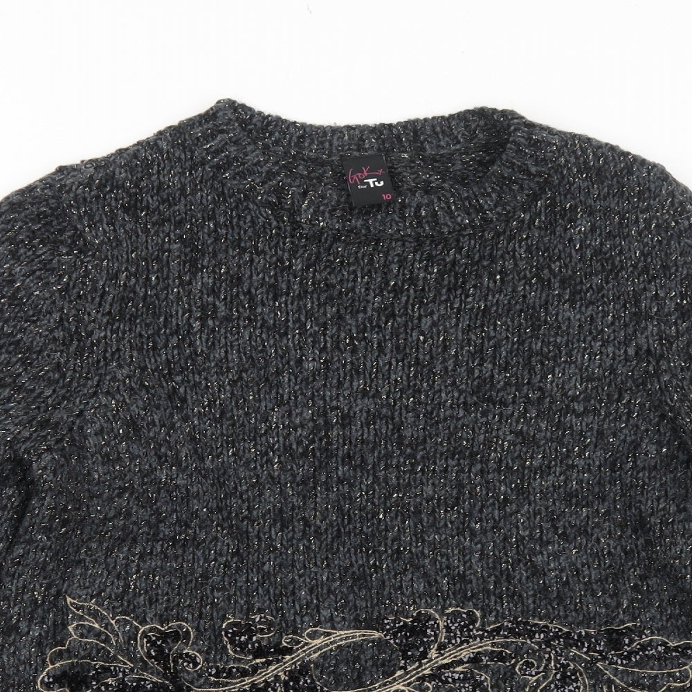 TU Womens Grey Round Neck Polyester Pullover Jumper Size 10