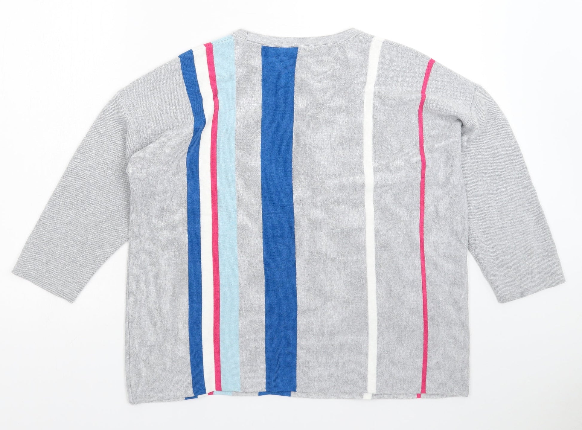TU Womens Grey Striped Knit Pullover Jumper Size 16