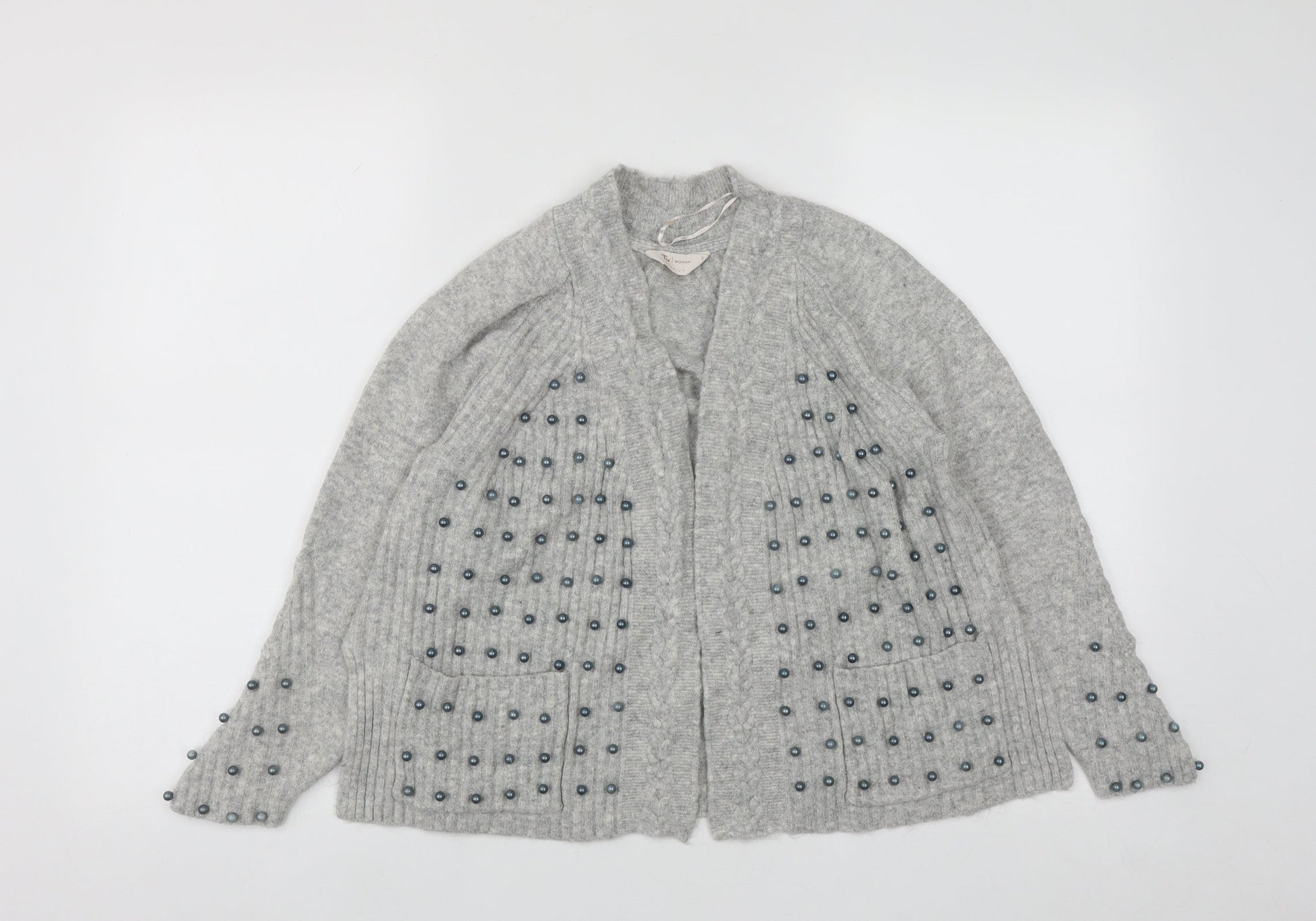 TU Womens Grey V-Neck Acrylic Cardigan Jumper Size 8