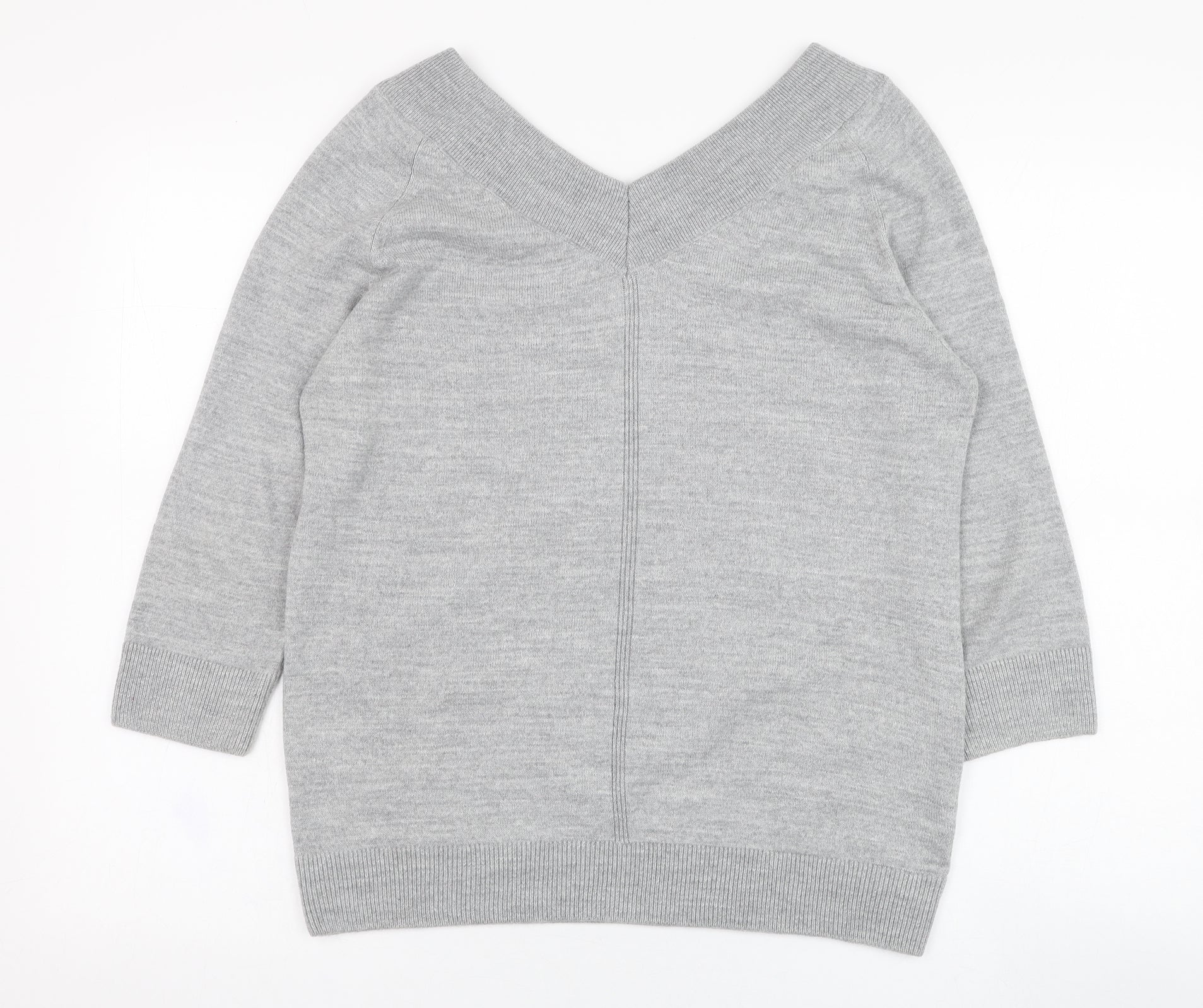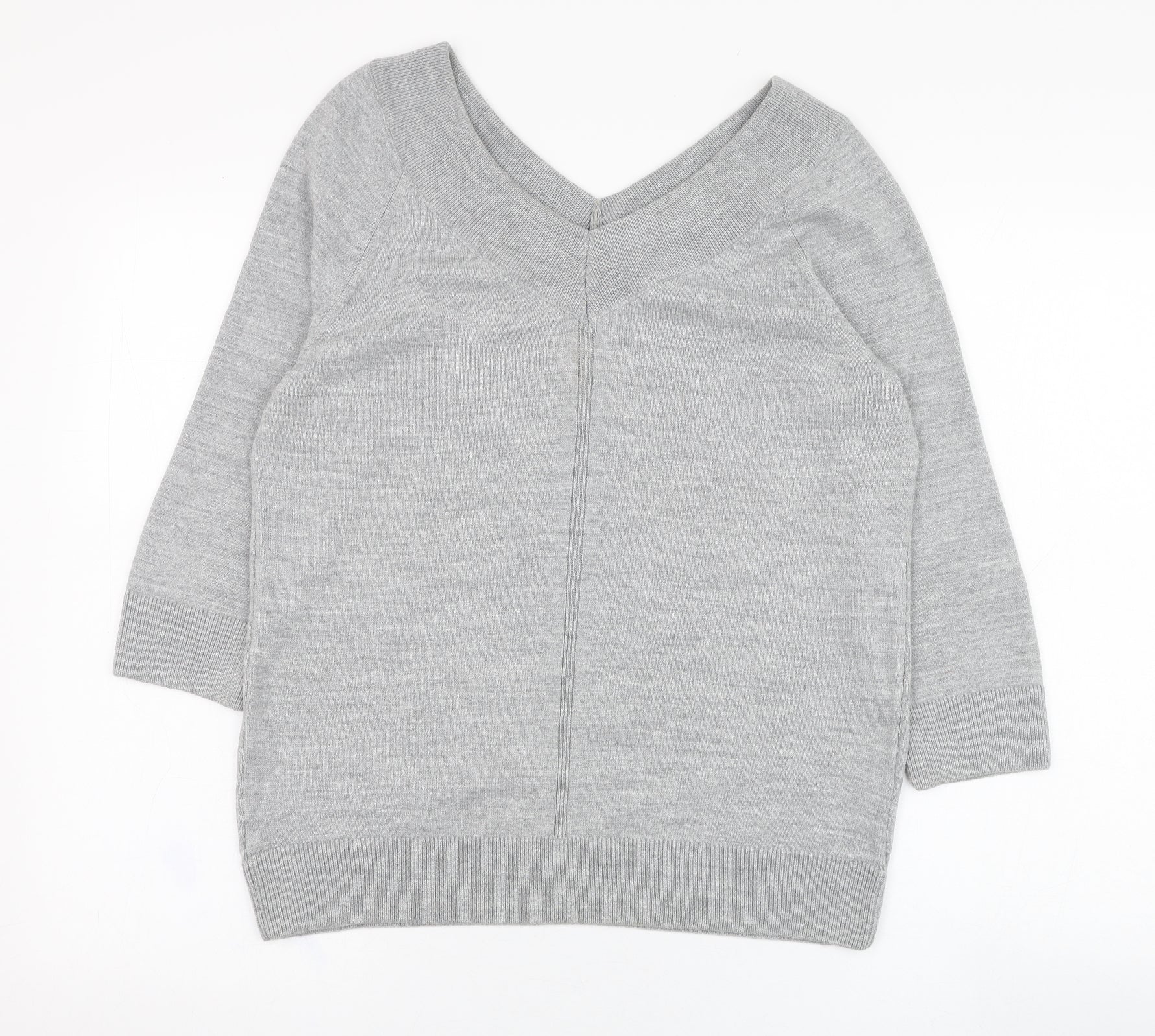 TU Womens Grey V-Neck Acrylic Pullover Jumper Size 10