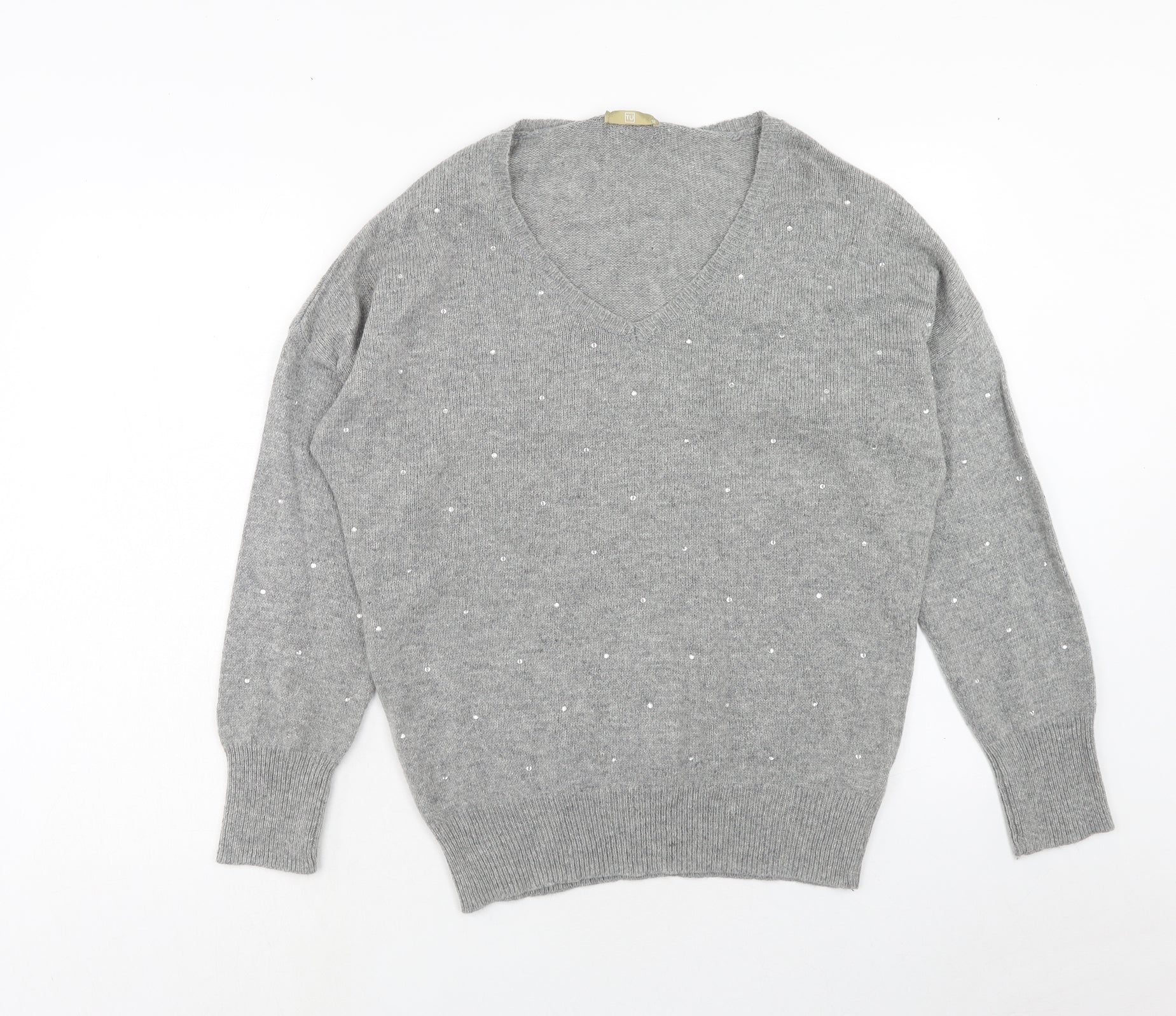 TU Womens Grey V-Neck Acrylic Pullover Jumper Size 12