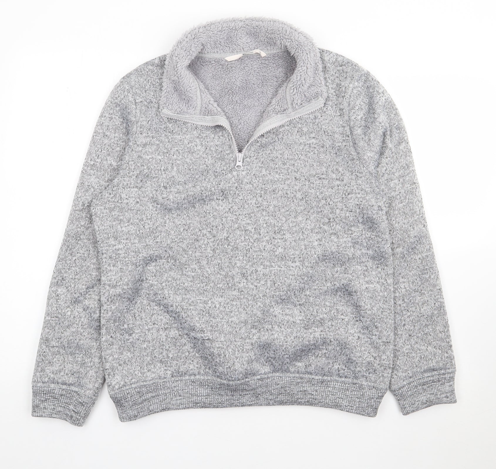 TU Womens Grey V-Neck Polyester Pullover Jumper Size 14 - Fur Lined