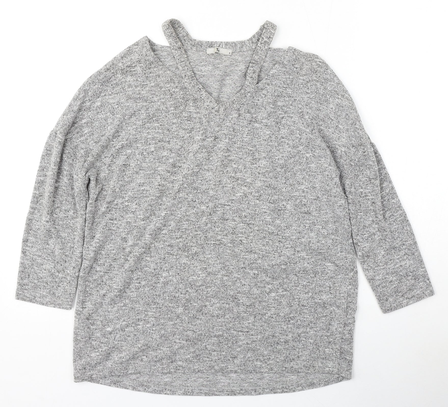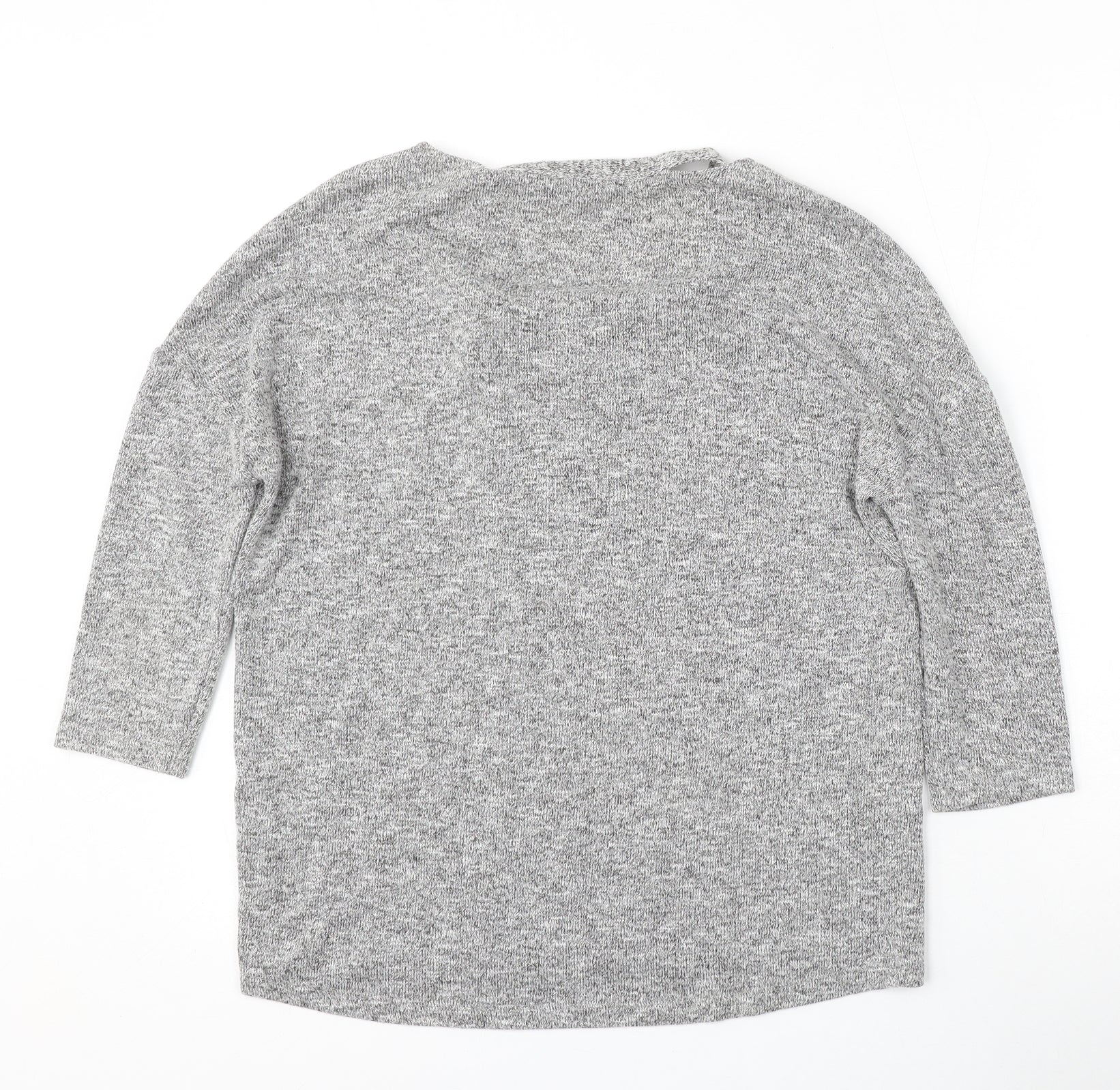 TU Womens Grey V-Neck Polyester Pullover Jumper Size 8