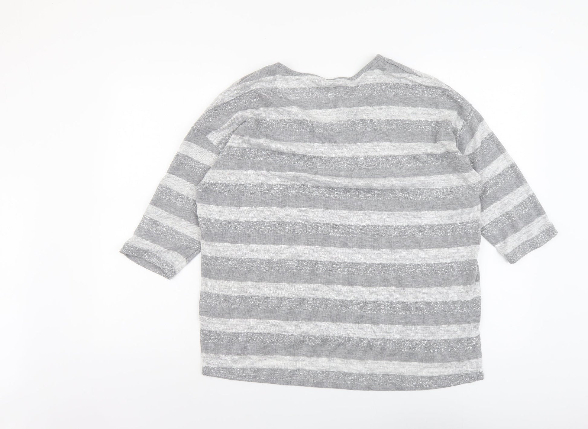 TU Womens Grey V-Neck Striped Polyester Pullover Jumper Size 16