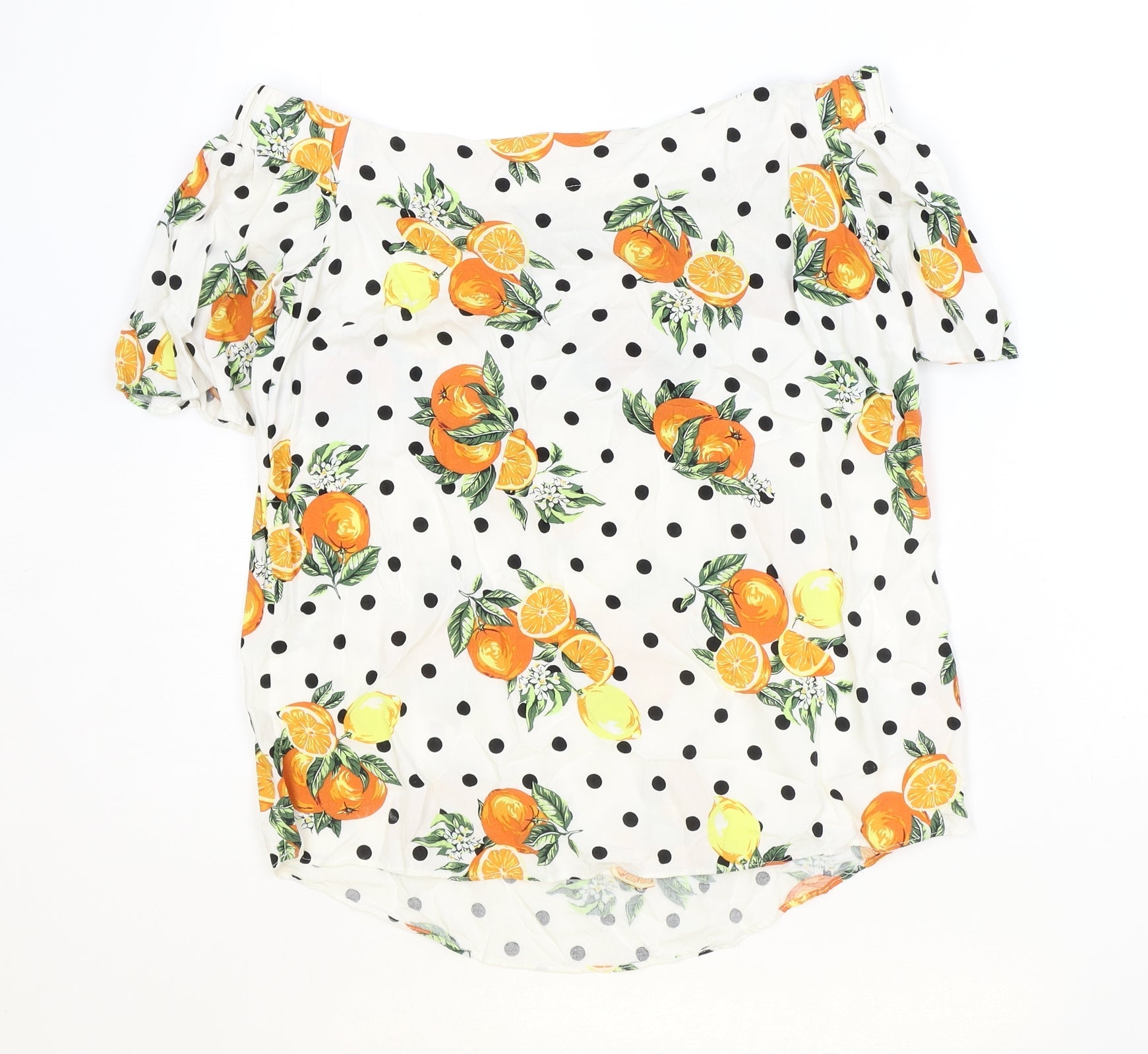 TU Womens Ivory Polka Dot Polyester Basic Blouse Size 8 Off the Shoulder - Orange
