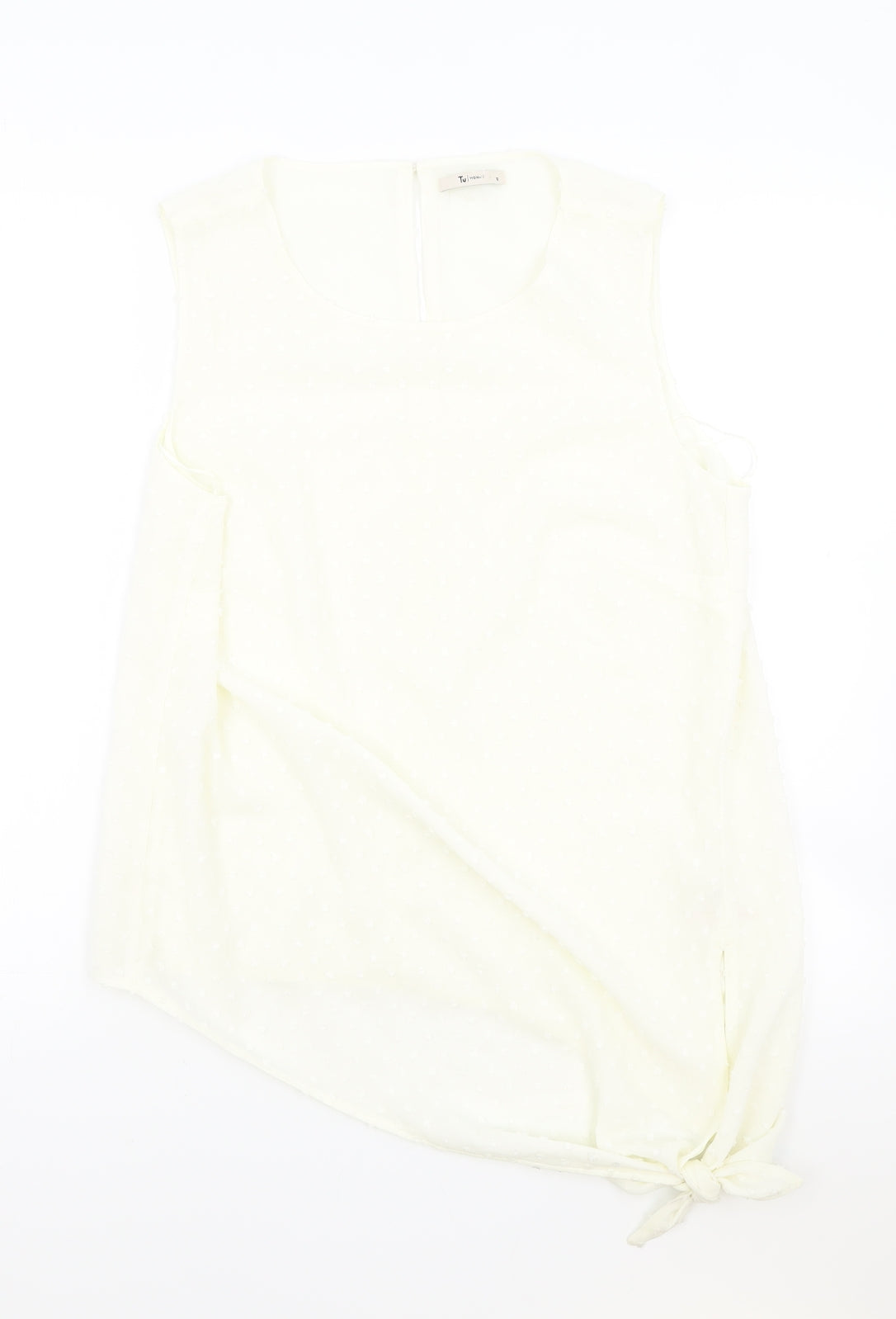 TU Womens Ivory Polyester Basic Blouse Size 12 Round Neck
