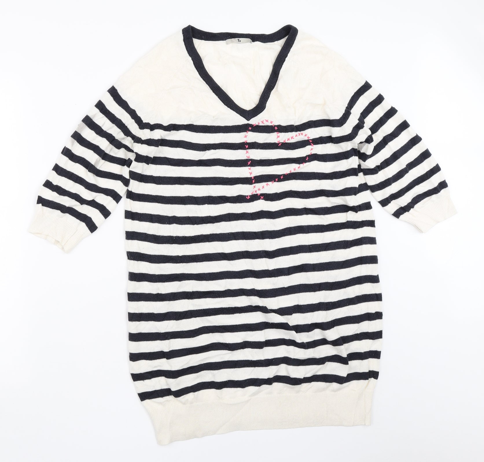 TU Womens Ivory Striped Pullover Jumper Size 14