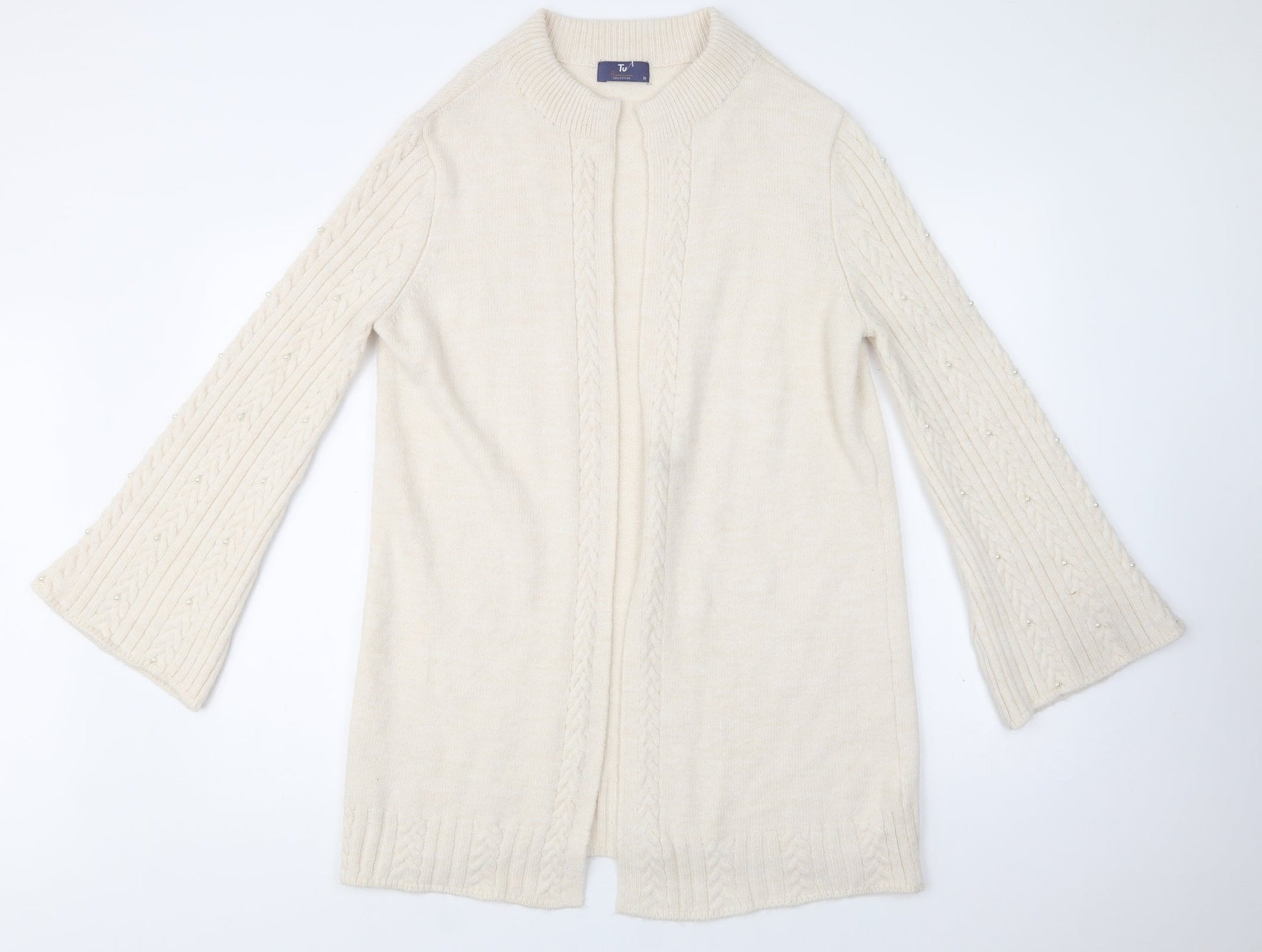 TU Womens Ivory V-Neck Acrylic Cardigan Jumper Size 10