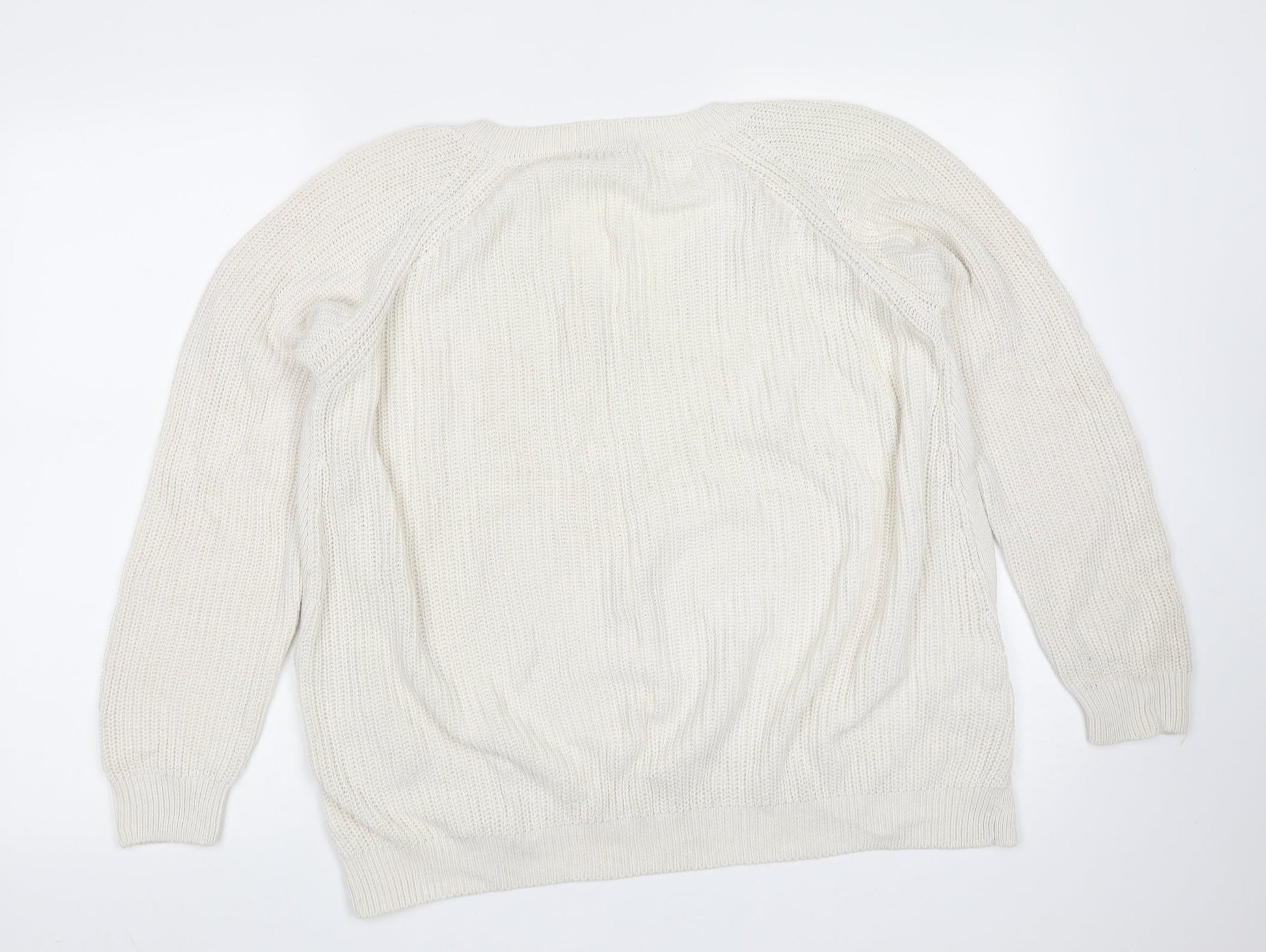TU Womens Ivory V-Neck Cotton Pullover Jumper Size 12