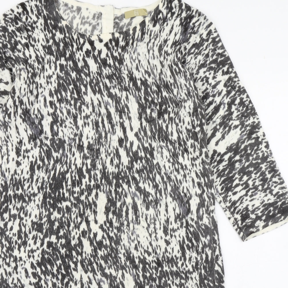 TU Womens Multicoloured Animal Print Acrylic Jumper Dress Size 14 Round Neck Button