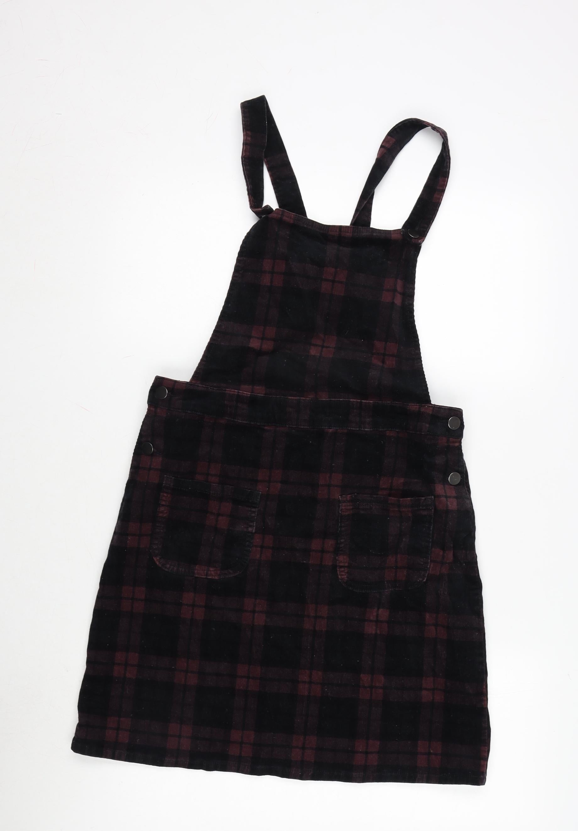 TU Womens Multicoloured Check Polyester A-Line Size 10 Square Neck Snap