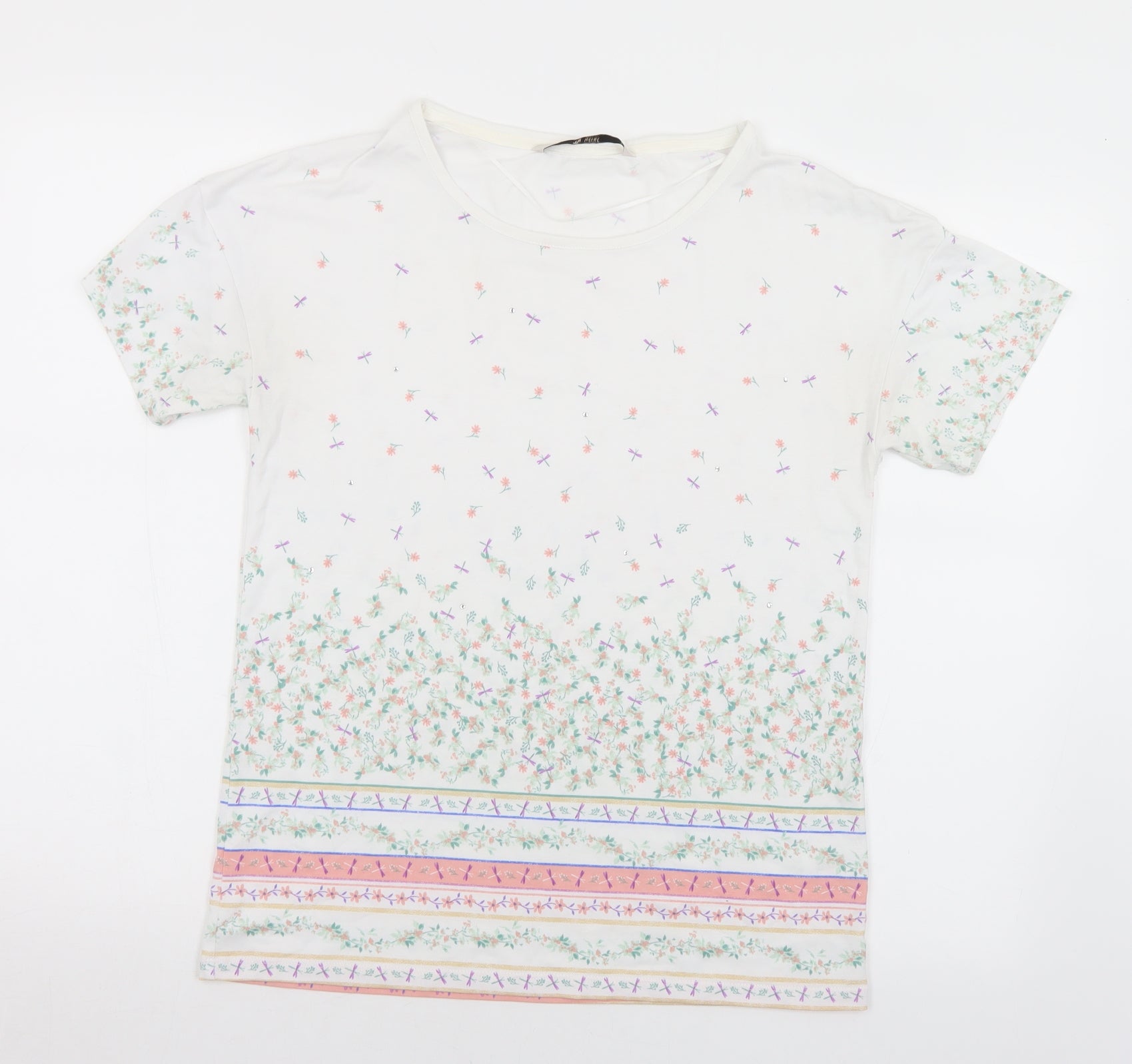 TU Womens Multicoloured Floral Polyester Basic T-Shirt Size 8 Round Neck