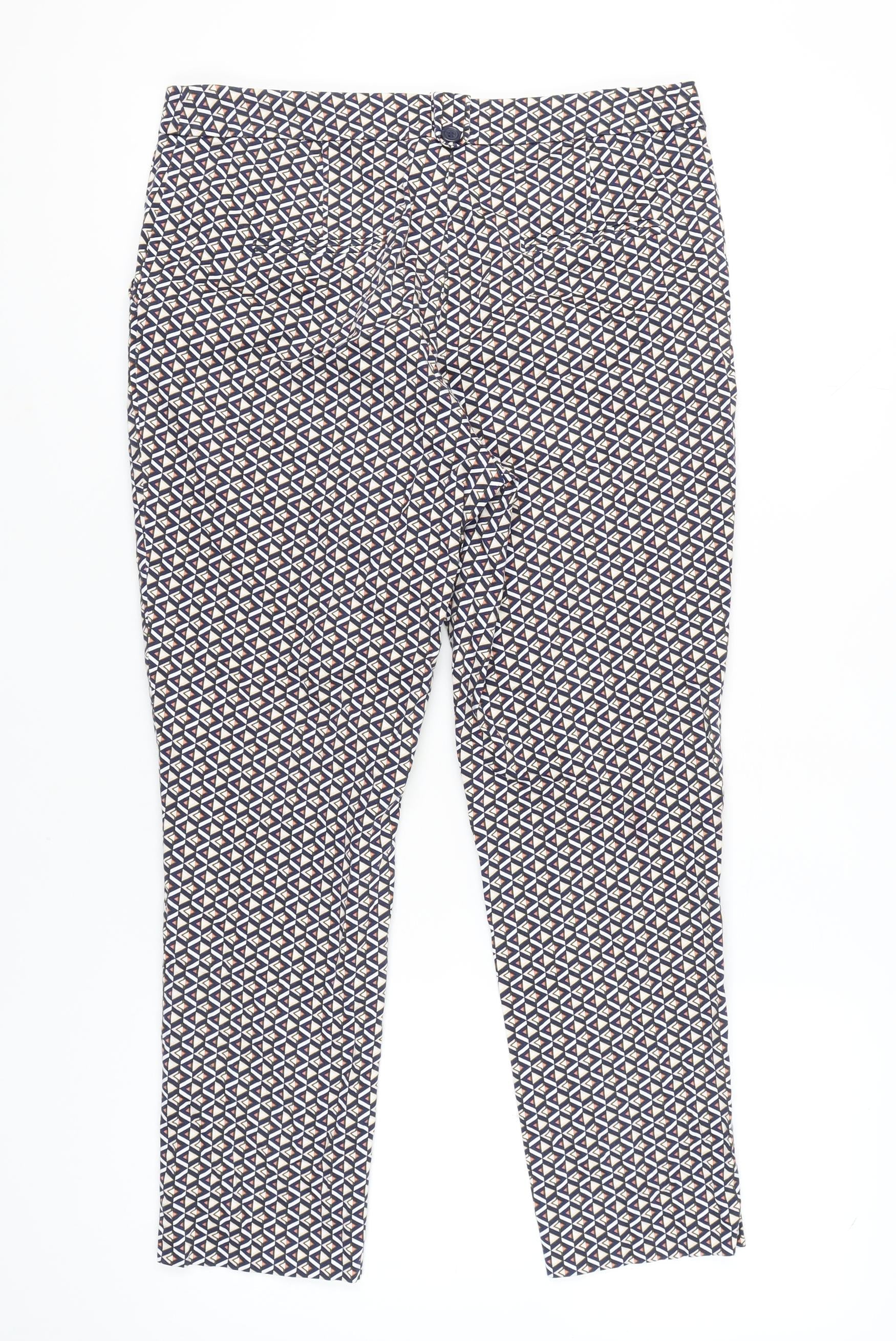 TU Womens Multicoloured Geometric Chino Trousers Size 14 Slim Fit
