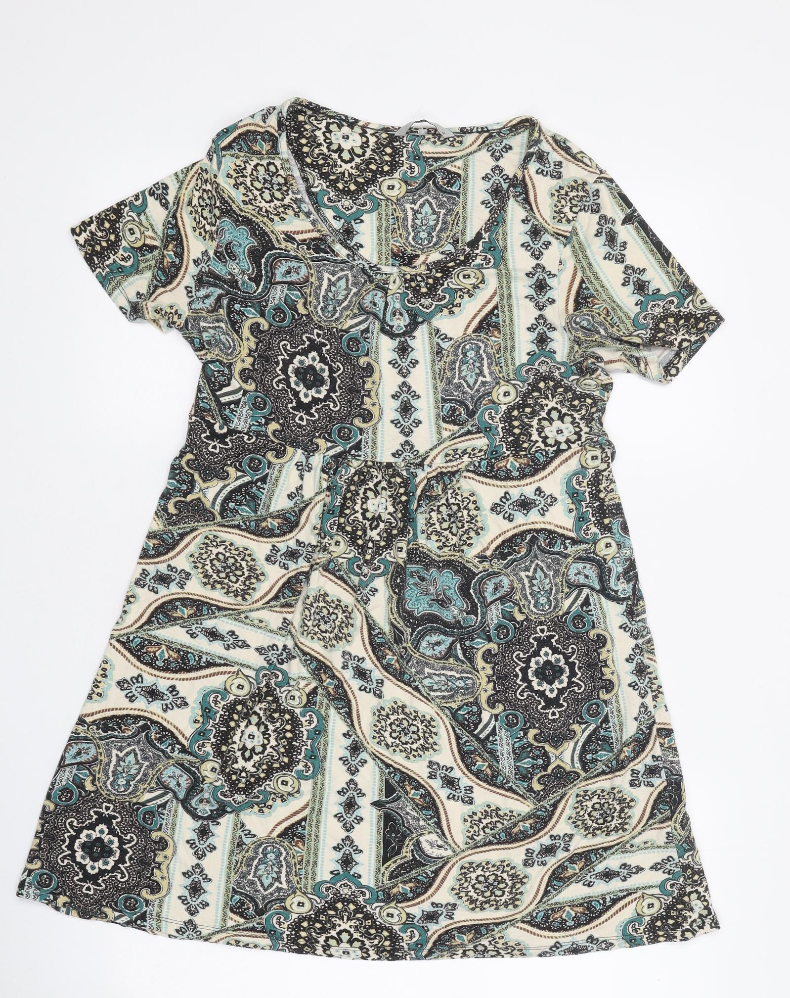 TU Womens Multicoloured Geometric Polyester A-Line Size 12 Scoop Neck Pullover