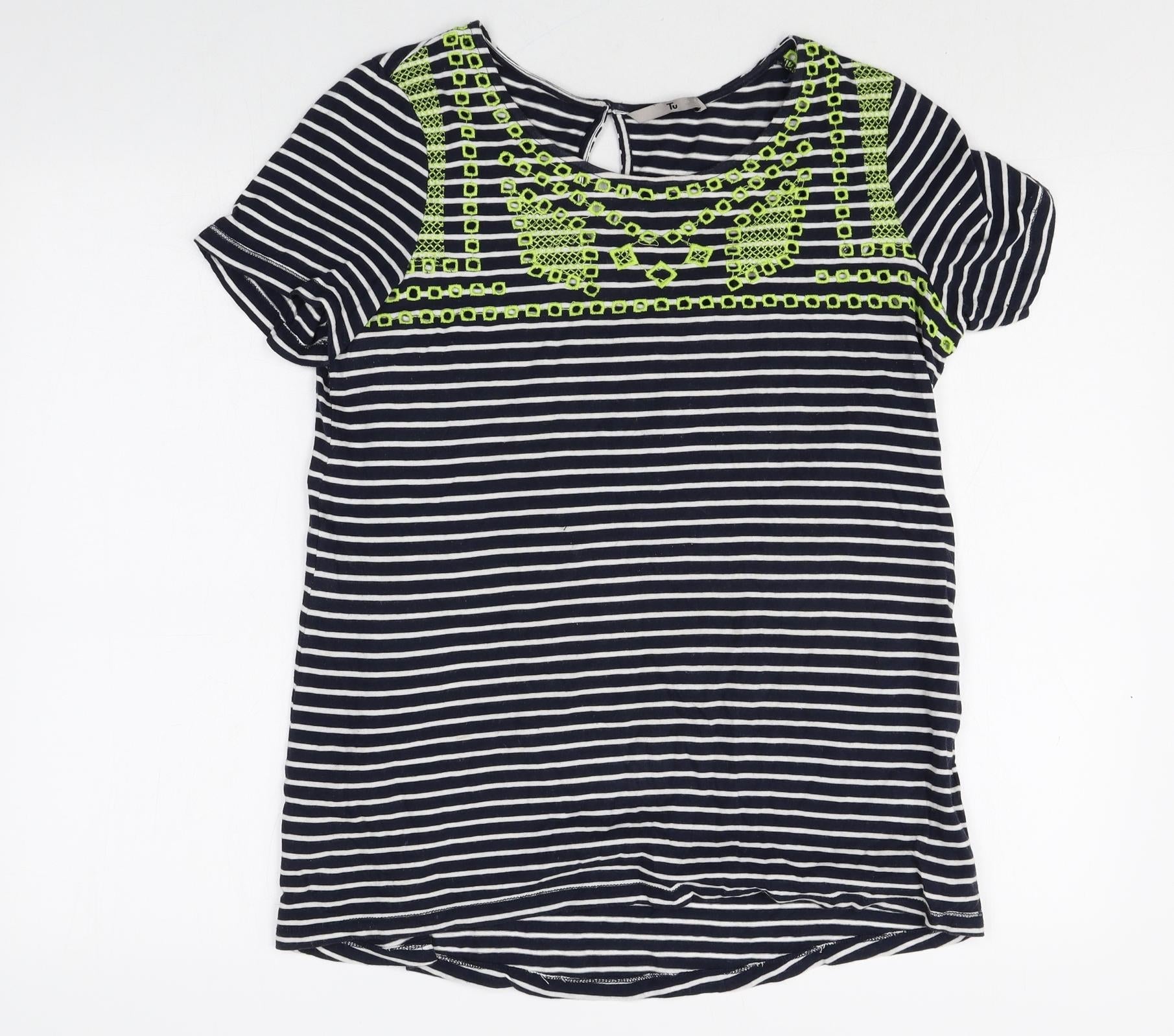 TU Womens Multicoloured Striped 100% Cotton Basic T-Shirt Size 8 Round Neck