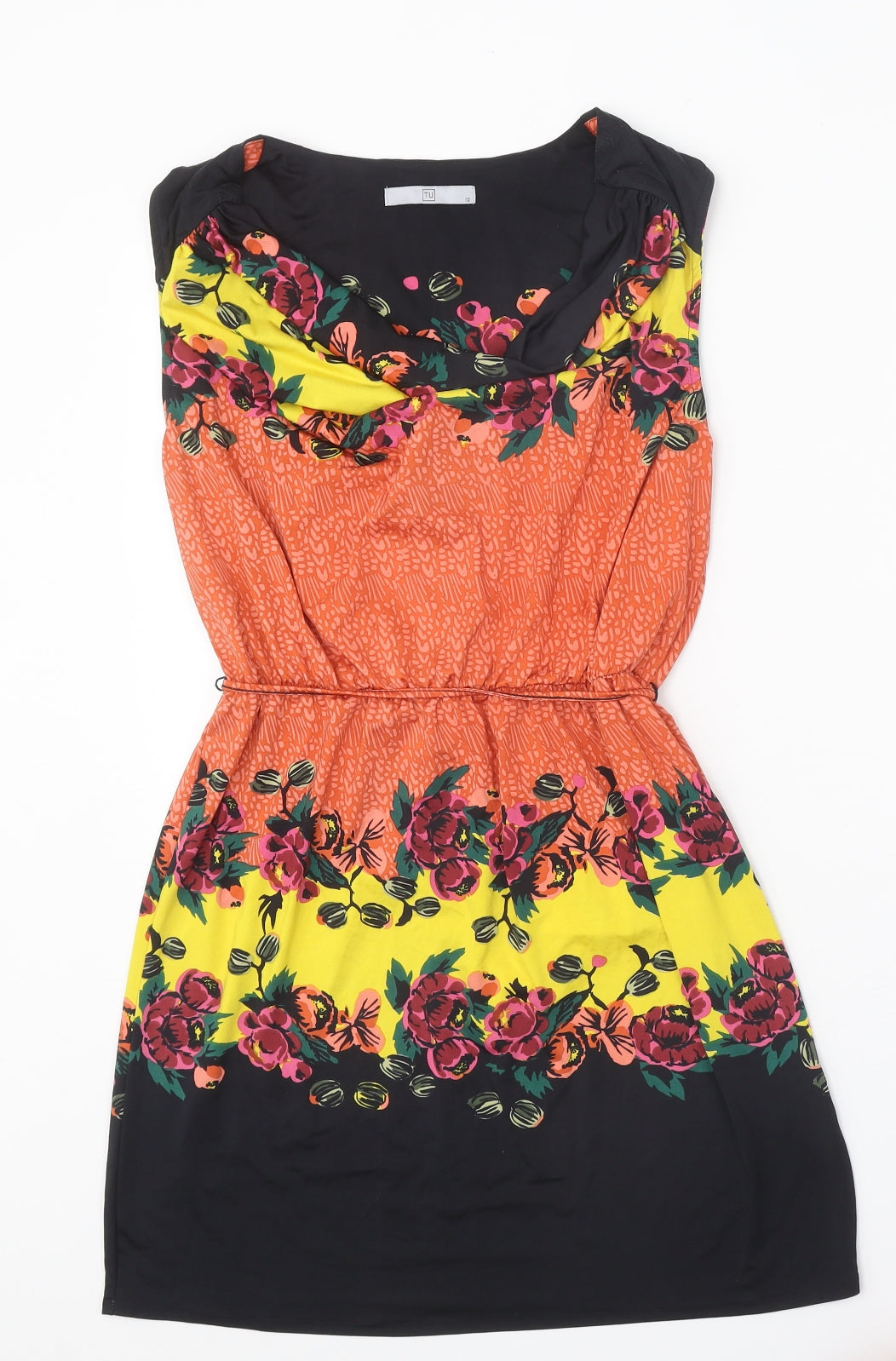 TU Womens Orange Geometric Polyester A-Line Size 10 Round Neck Tie