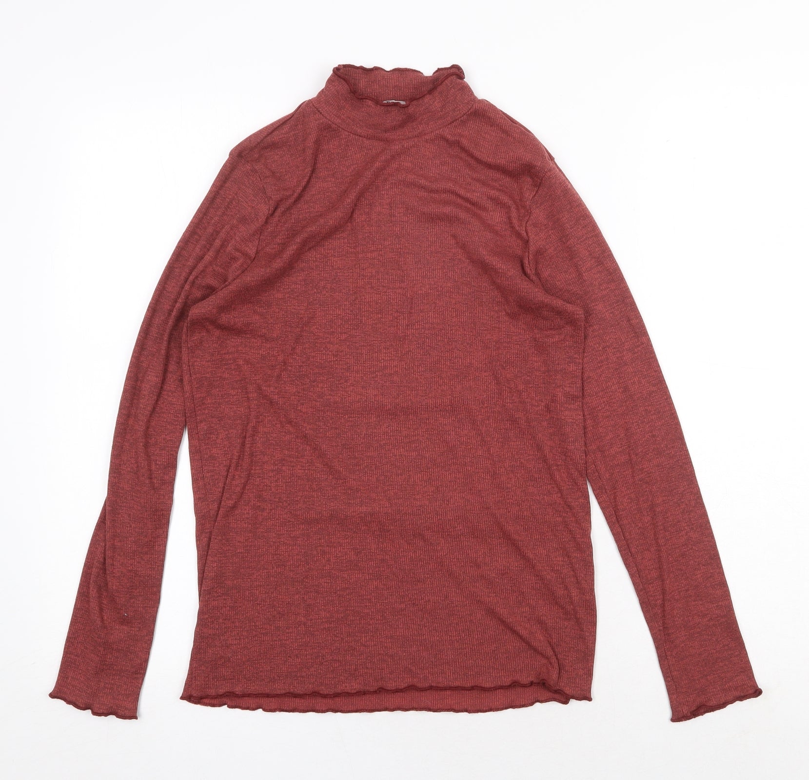 TU Womens Orange Polyester Basic Blouse Size 12 Mock Neck