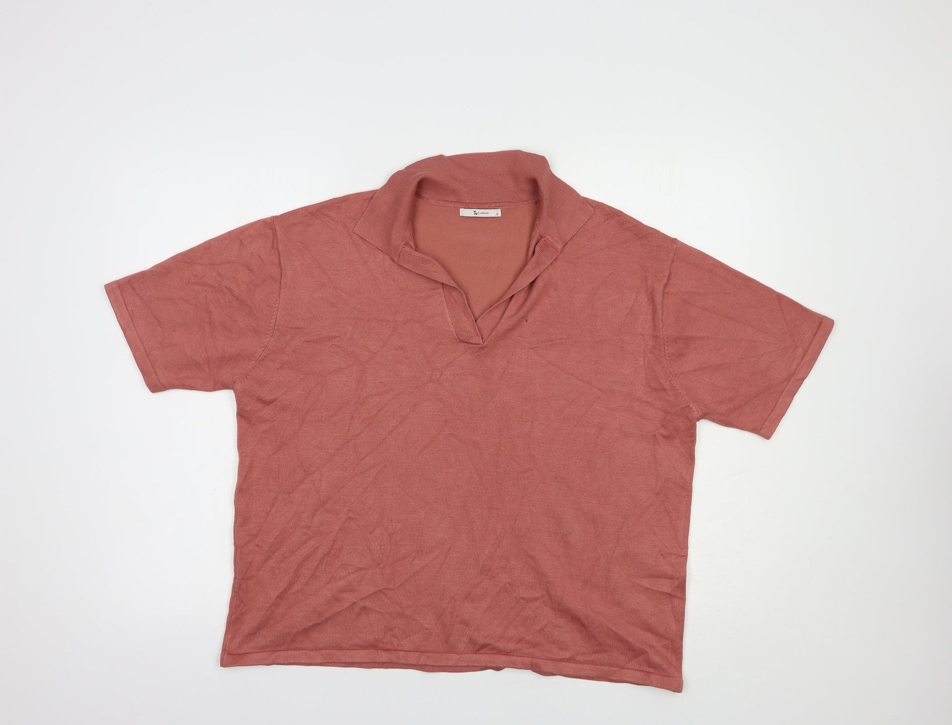 TU Womens Pink Collared Viscose Pullover Jumper Size 16