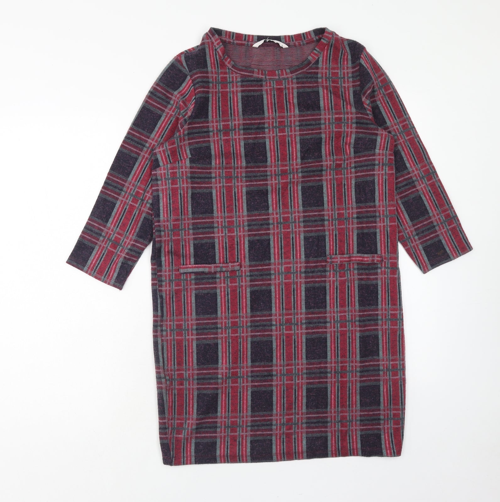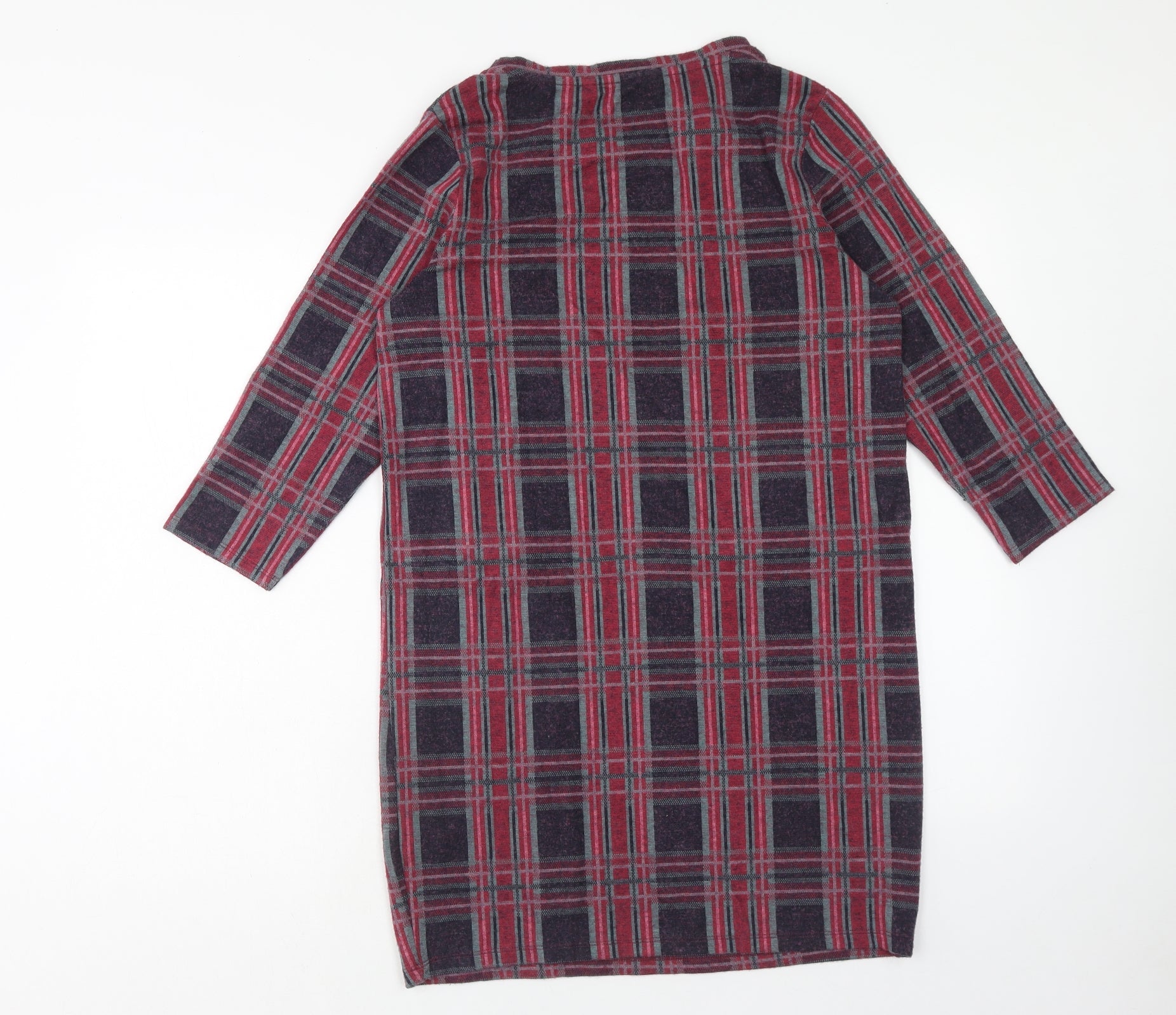 TU Womens Pink Plaid Polyester Shift Size 10 Round Neck Pullover