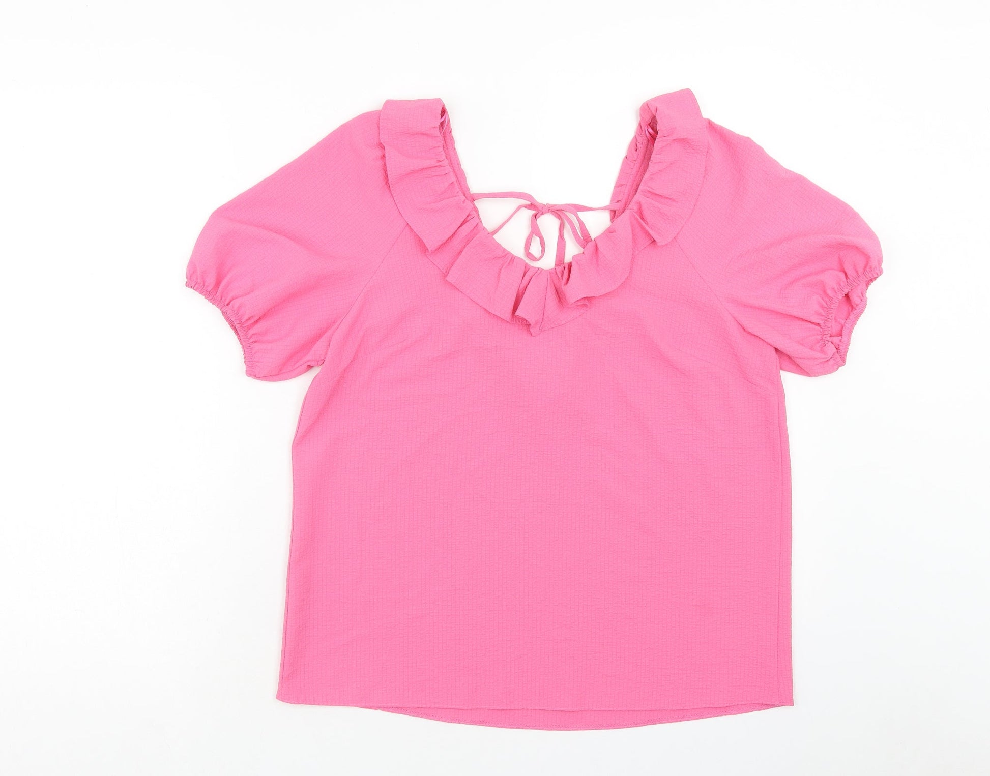 TU Womens Pink Polyester Basic Blouse Size 12 V-Neck