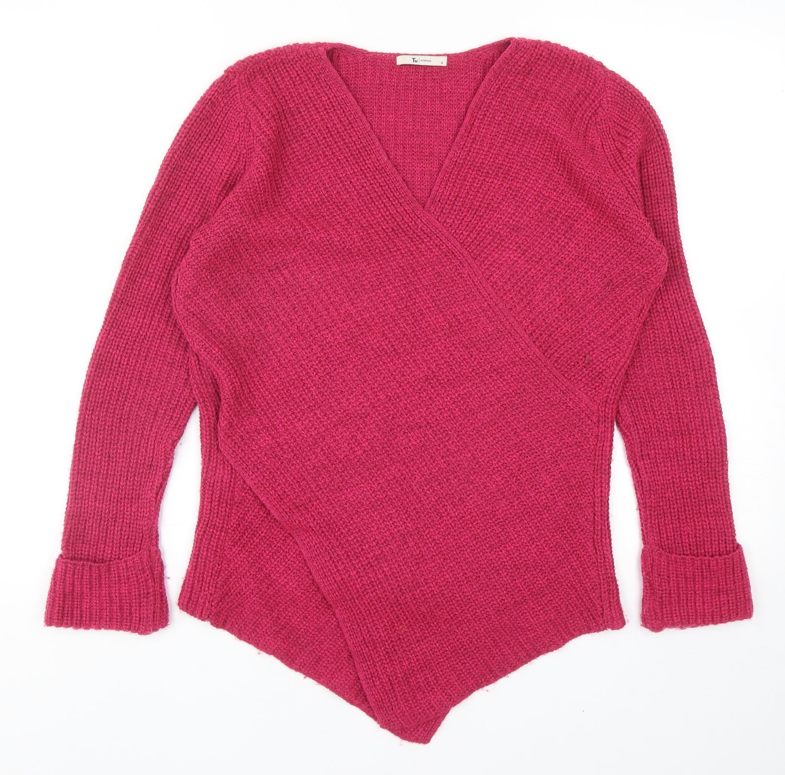 TU Womens Pink V-Neck Acrylic Pullover Jumper Size 12