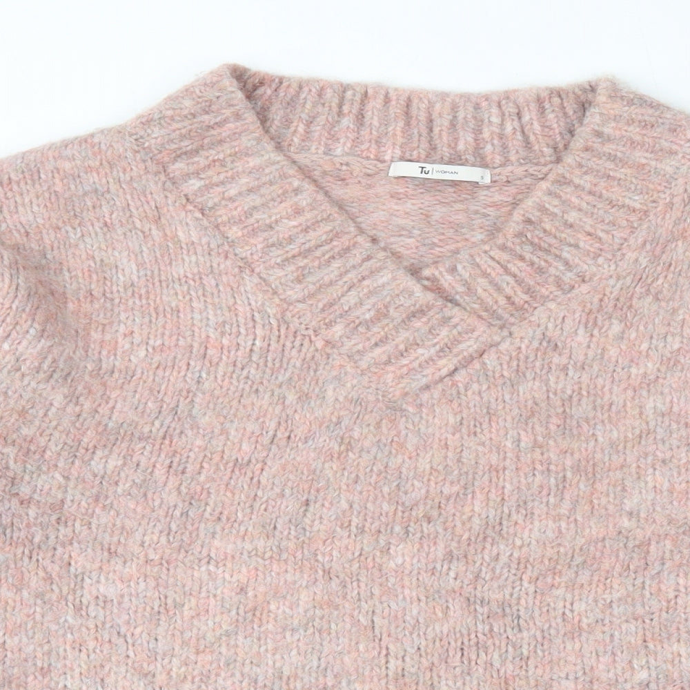 TU Womens Pink V-Neck Acrylic Pullover Jumper Size S
