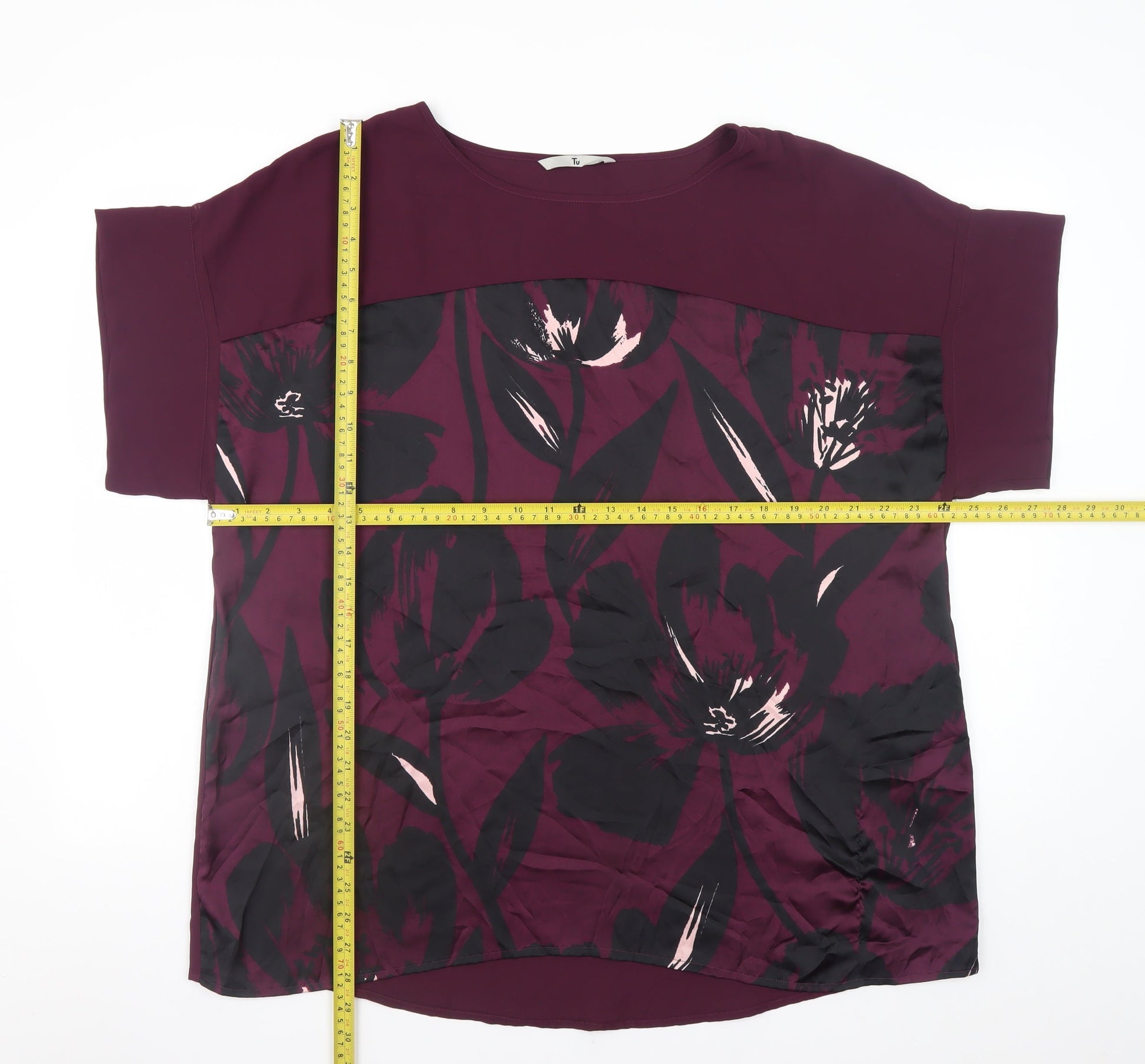 Tu Women's Purple Floral Short Sleeve Blouse Size 22