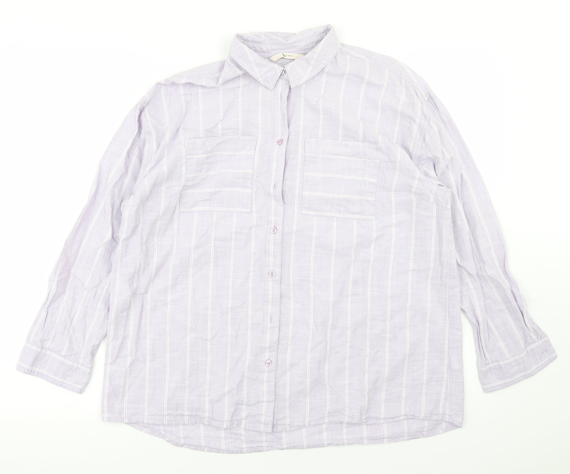 TU Womens Purple Striped Cotton Basic Button-Up Size 14 Collared
