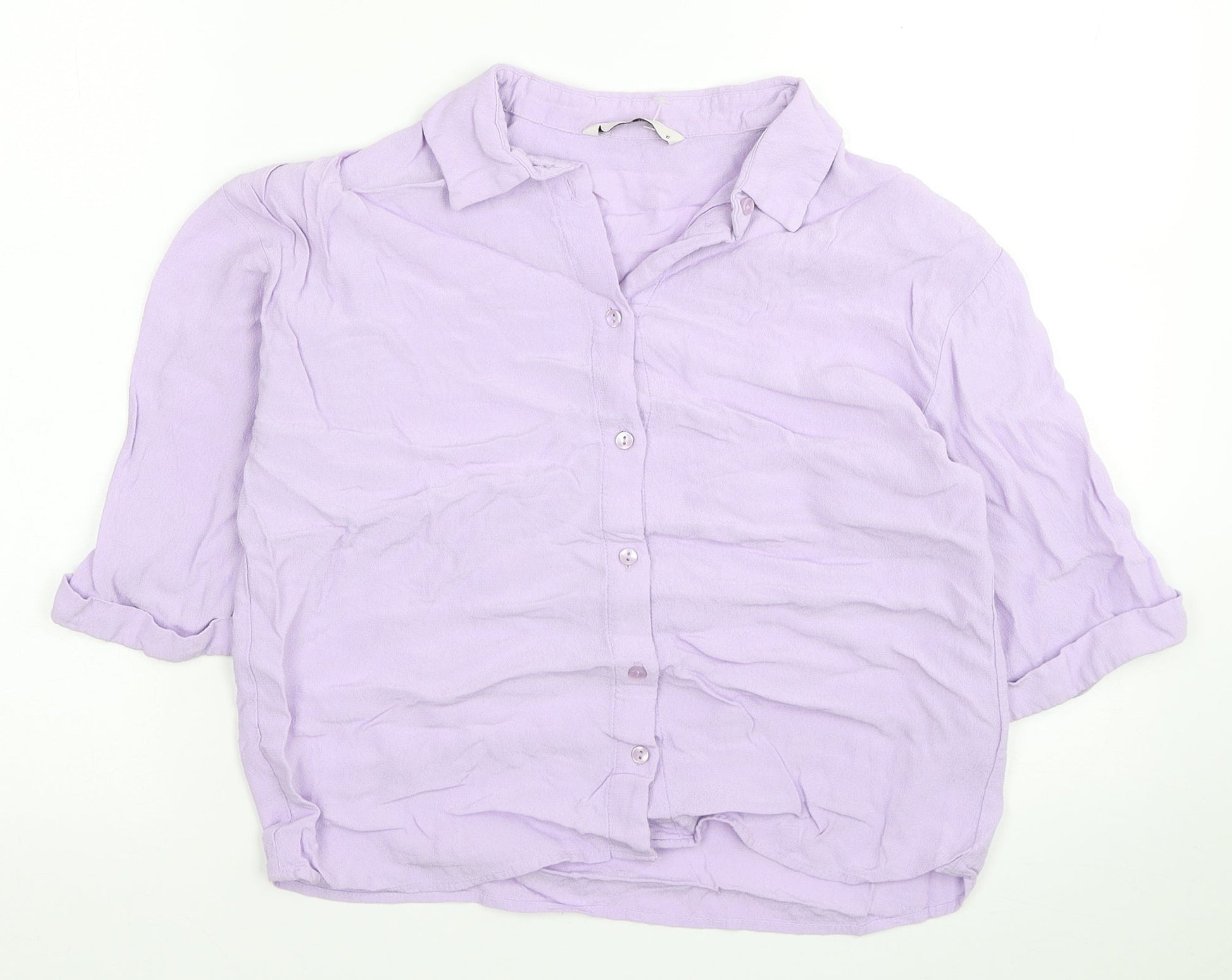 TU Womens Purple Viscose Basic Button-Up Size 10 Collared