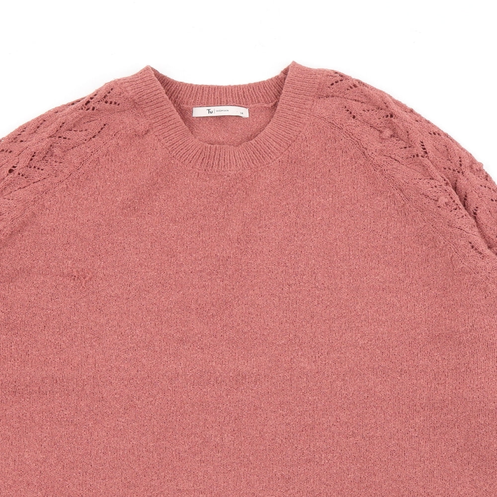 TU Womens Red Crew Neck Polyester Pullover Jumper Size 14