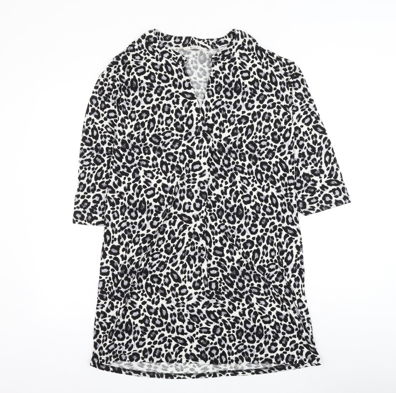 TU Womens White Animal Print Viscose Shift Size 10 V-Neck Pullover - Leopard Print