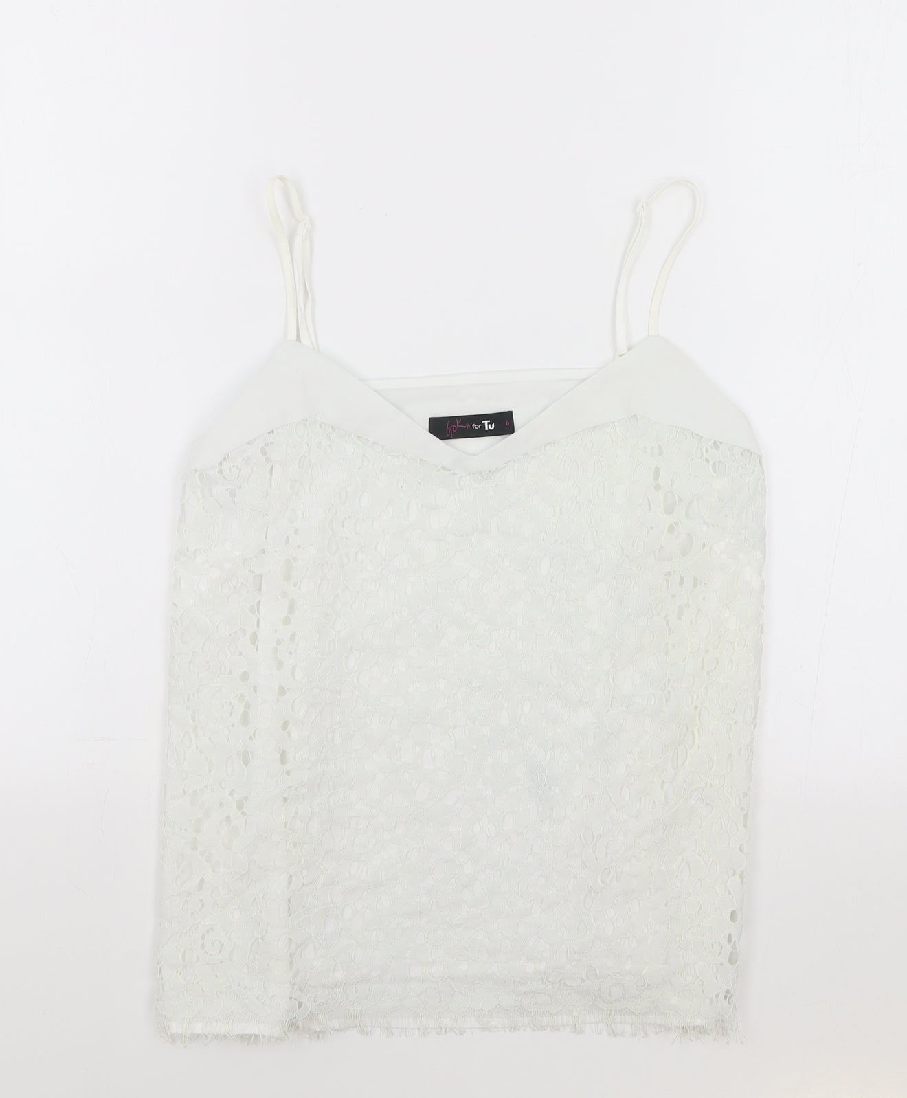 TU Womens White Floral Polyamide Camisole Tank Size 8 V-Neck - Gok Wan Collection