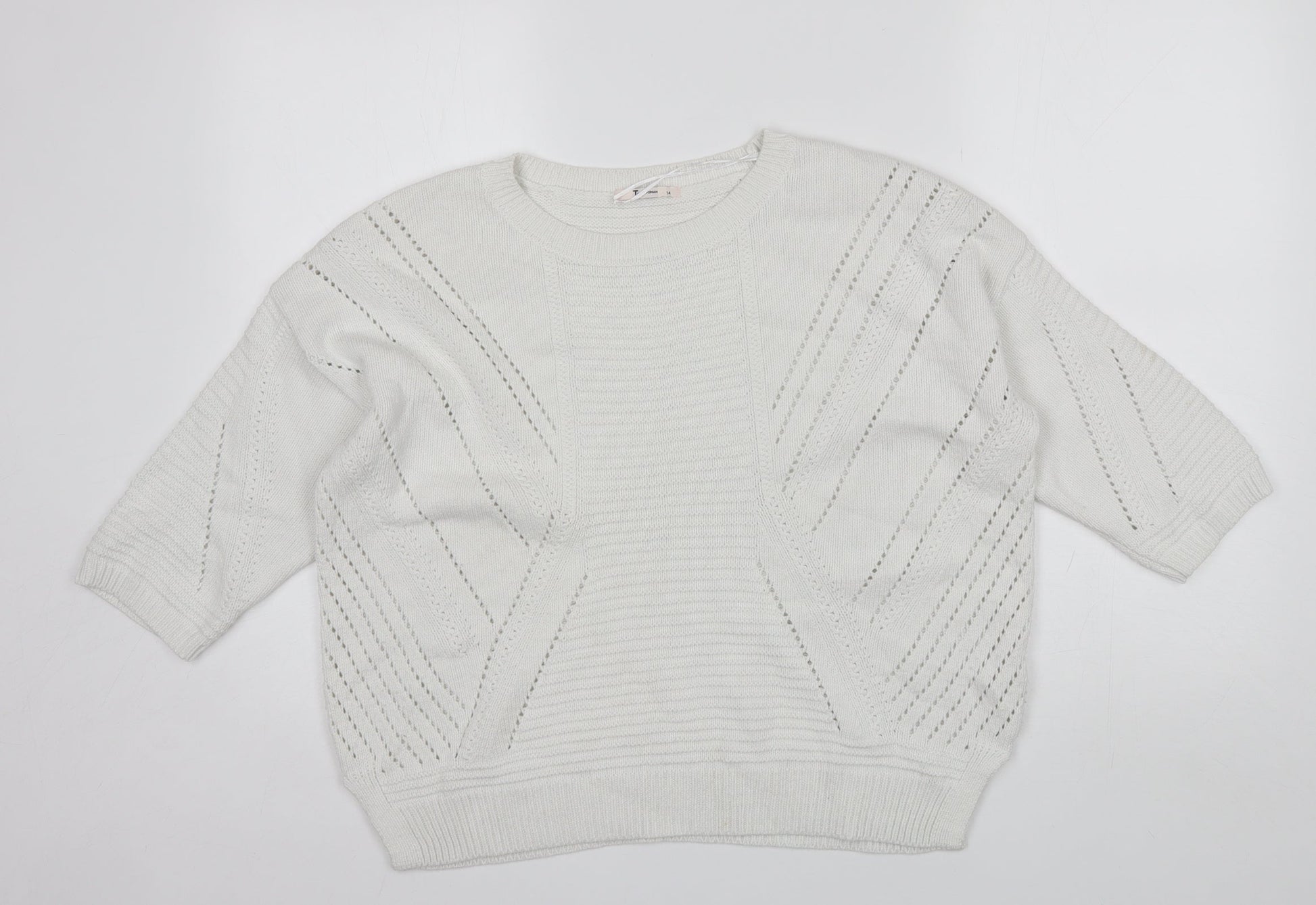 TU Womens White Round Neck Cotton Pullover Jumper Size 14